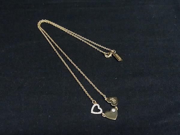 ■美品■ COACH コーチ 3連ハート ネックレス ペンダント アクセサリー レディース ゴールド系 DI9095