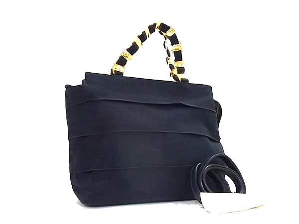 1円 ■美品■ Salvatore Ferragamo フェラガモ ヴァラチェーン キャンバス 2WAY ハンドバッグ ショルダーバッグ 肩掛け ネイビー系 GB1891