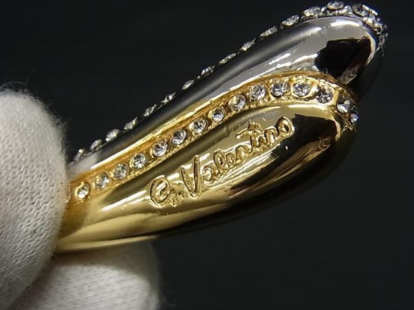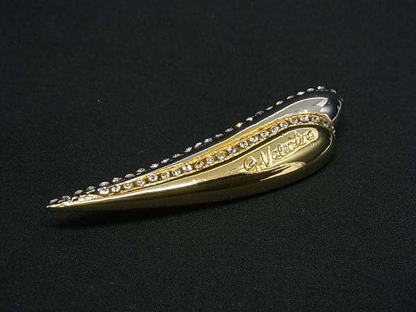 ■美品■ VALENTINO ヴァレンティノ ラインストーン ピンブローチ ピンバッジ アクセサリー ゴールド系×シルバー系 DI1898