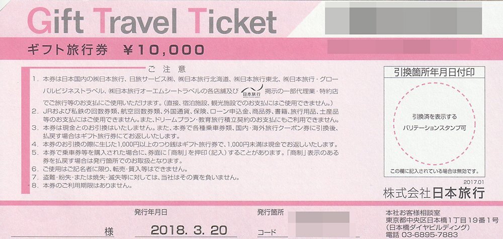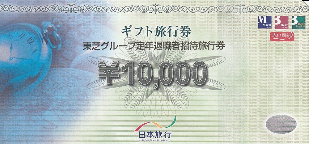 | 出 品 商 品 | 日本旅行 東芝グループ定年退職者招待旅行券 5万円分(10000円券×5枚) |
