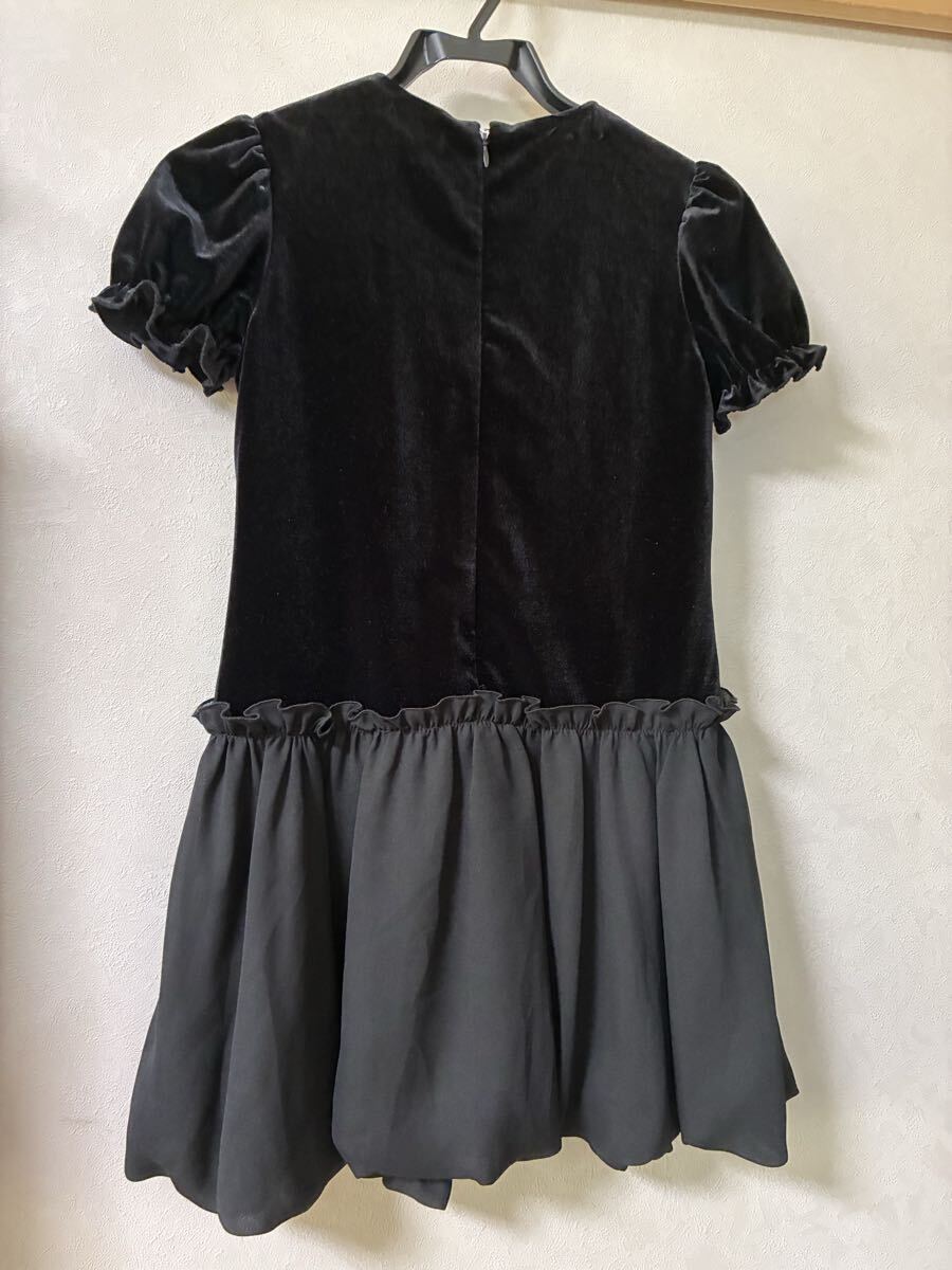 黒一色のなかに雰囲気の違うふたつの素材を使い、重すぎず、また華やかさ・上品さもあるお嬢様ワンピに仕上がりました。