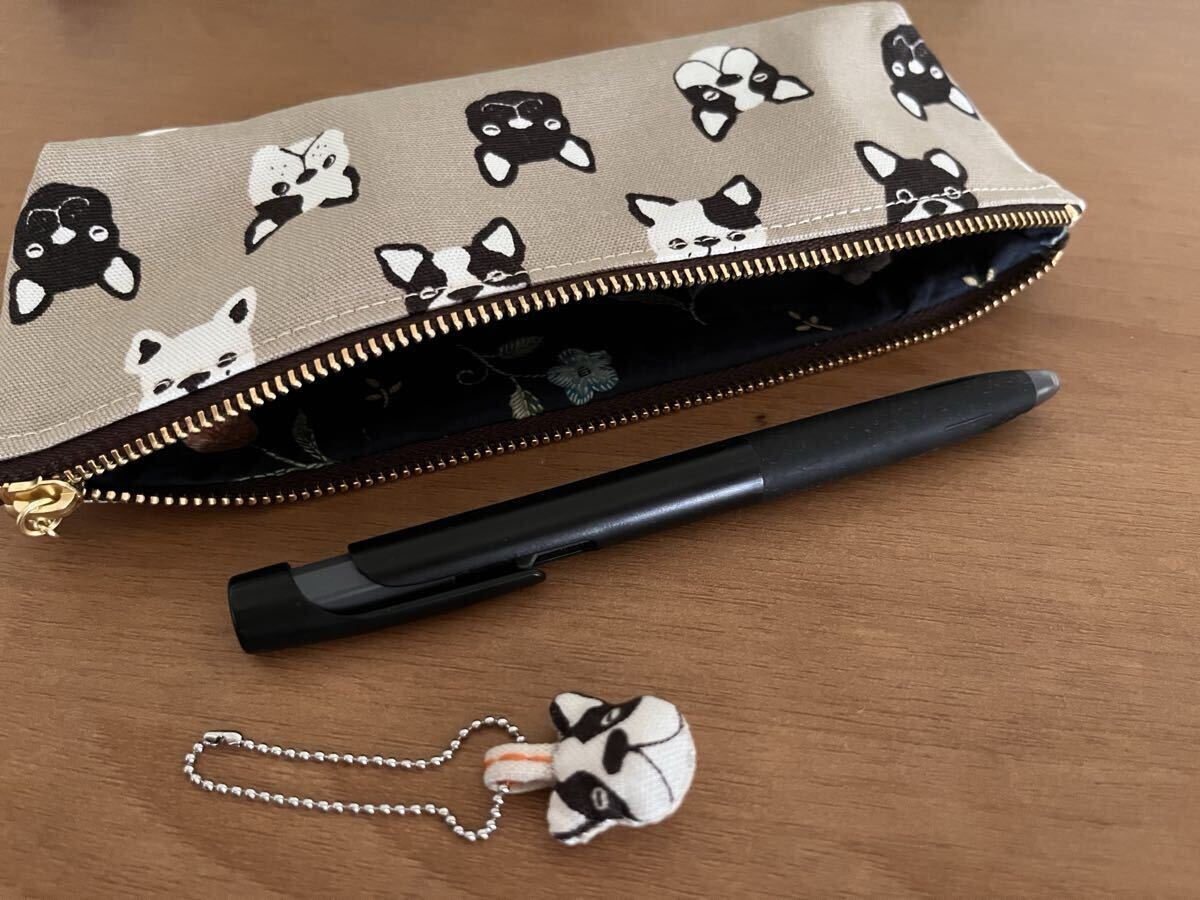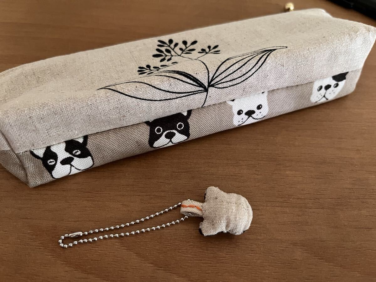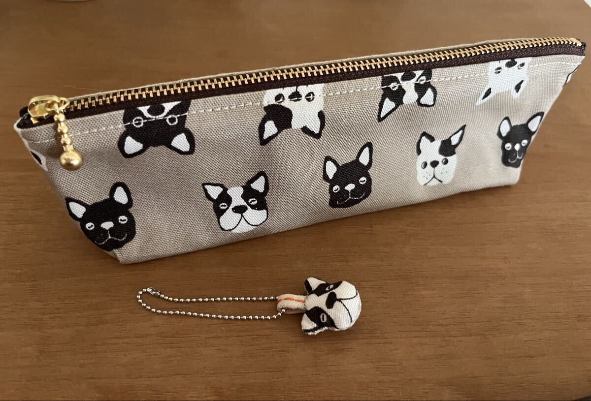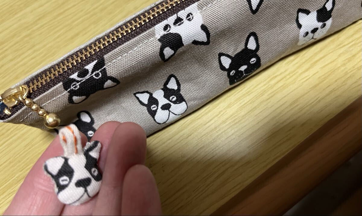 共布でニッコリ笑うフレンチブルのお顔チャームを作りましたのでオマケにどうぞ♪