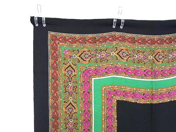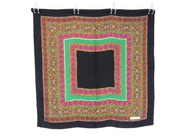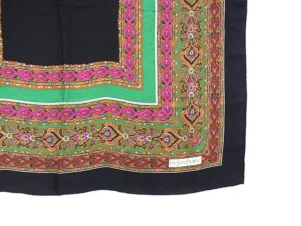 ■美品■ YVESSAINTLAURENT イヴサンローラン スカーフ ストール ショール レディース ブラック系×グリーン系 DG4889