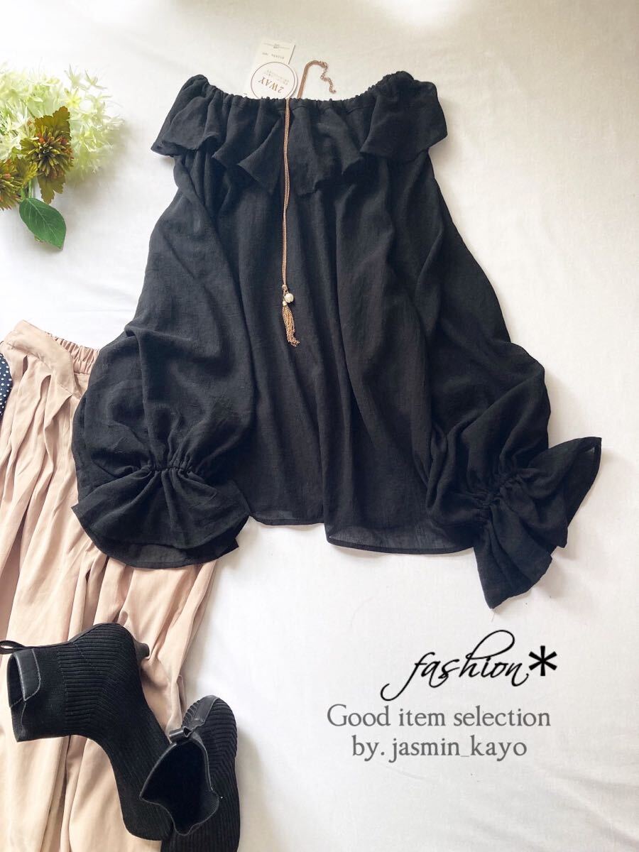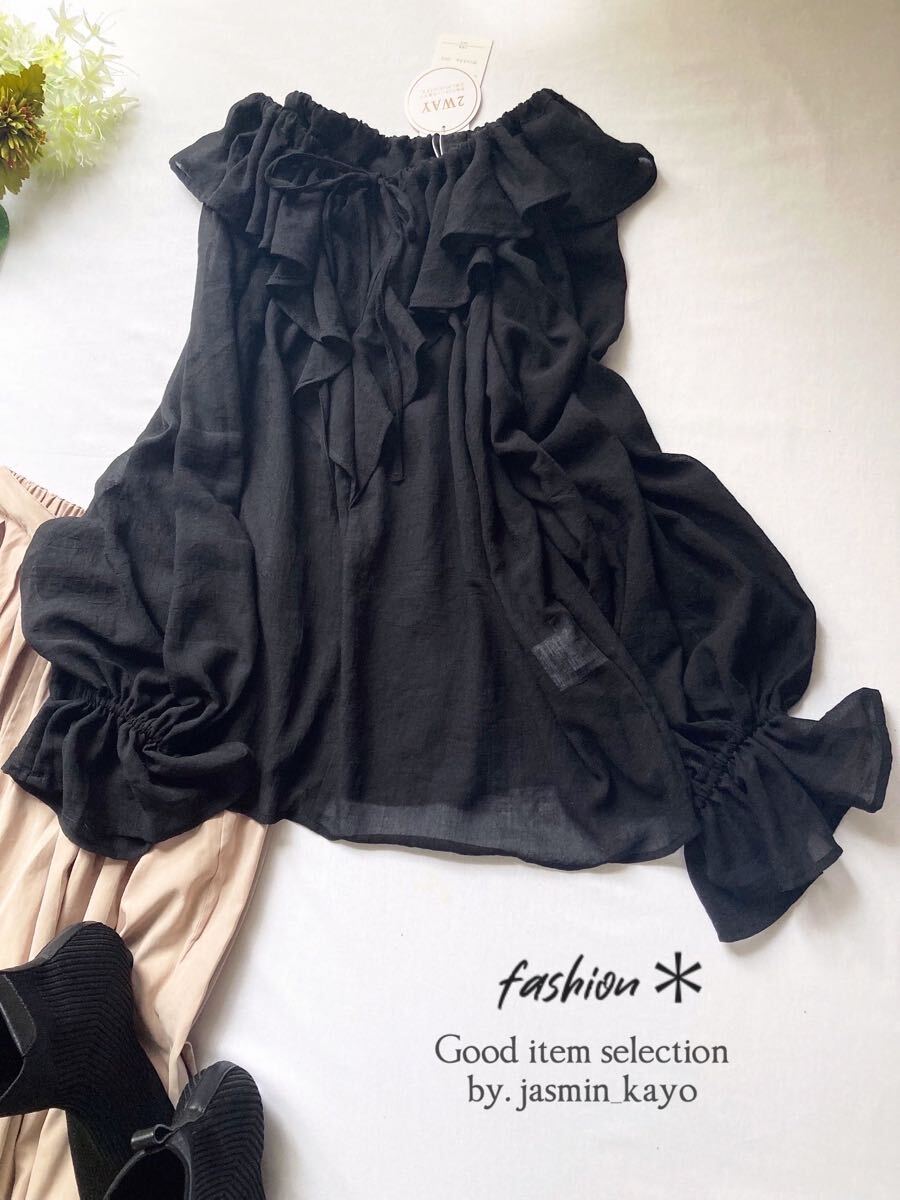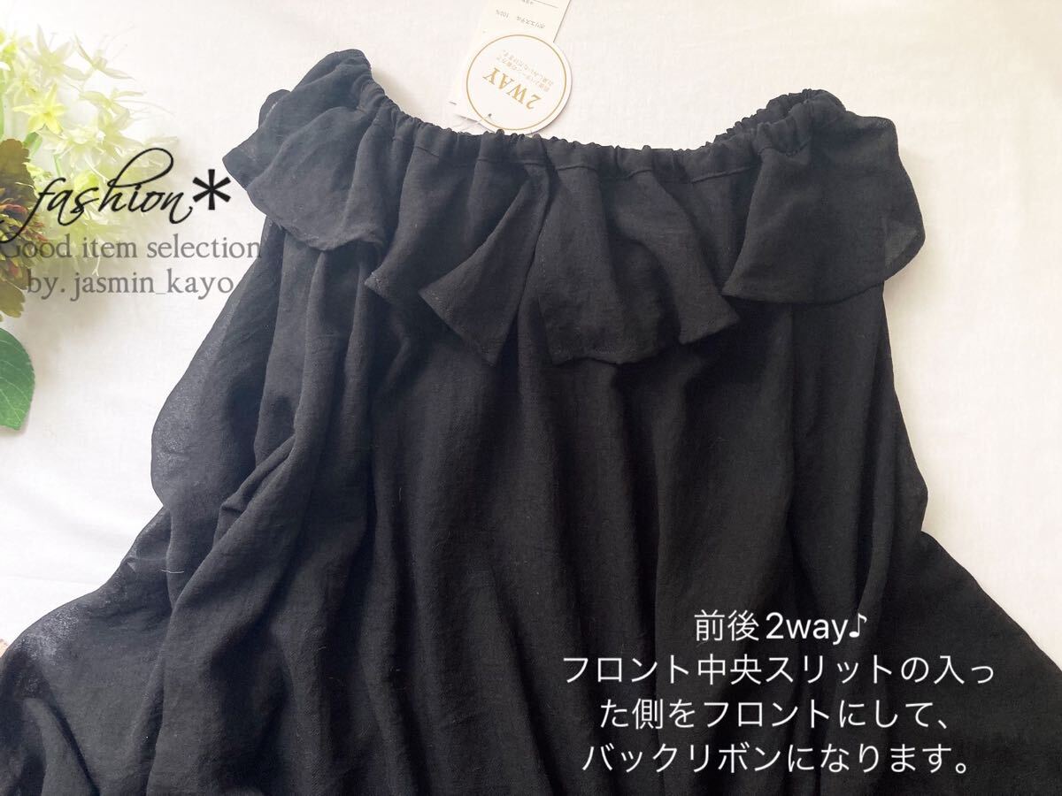 ◆新品3L~4L/LL◆前後2way♪リボンキーネックケープ襟*バックリボンにしても可愛い♪しっかり感と楊柳感が優しいブラウスtops*黒