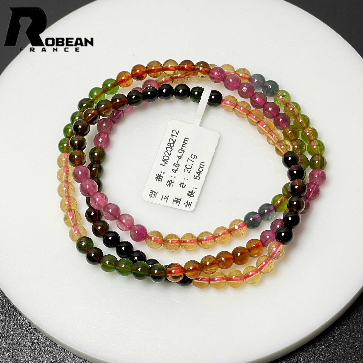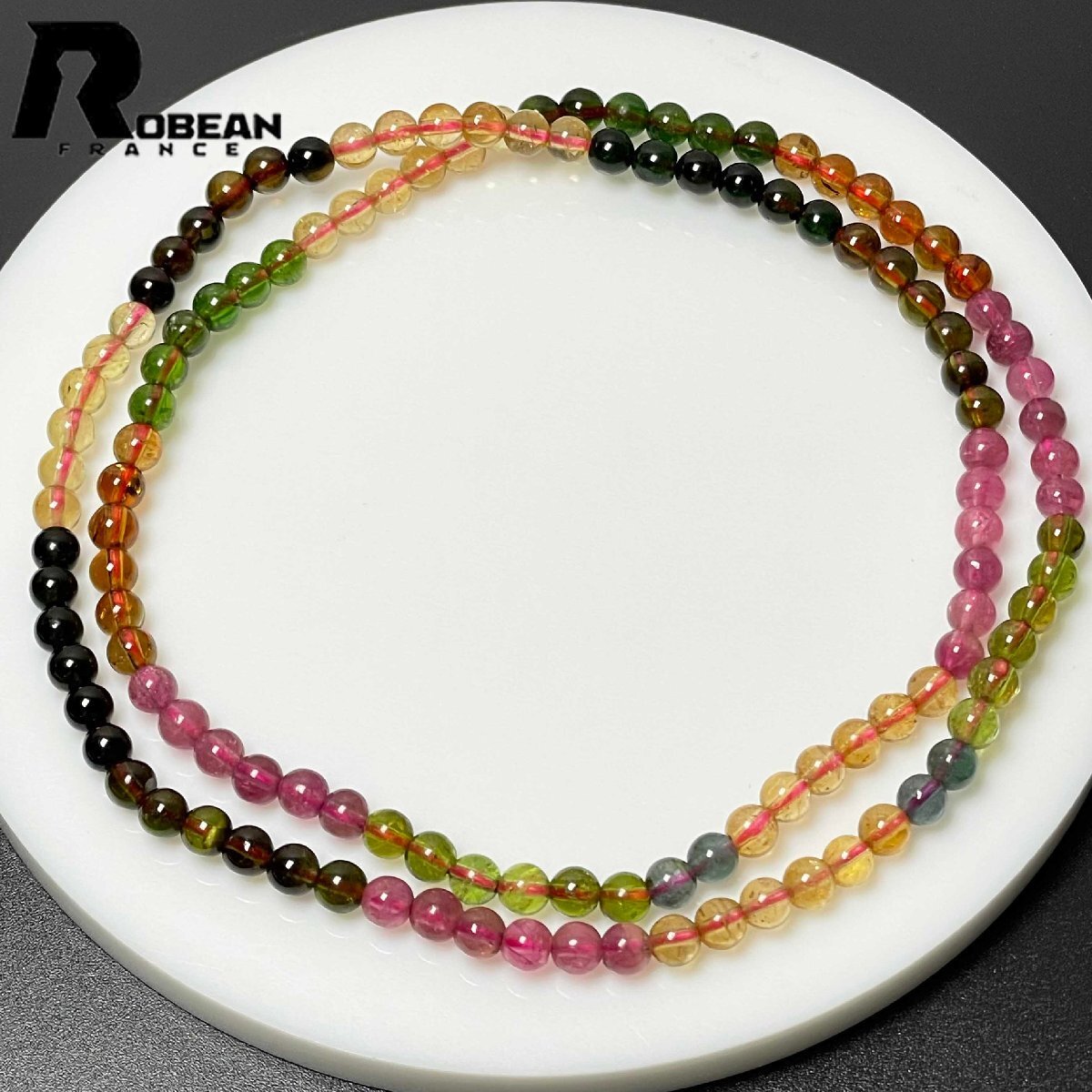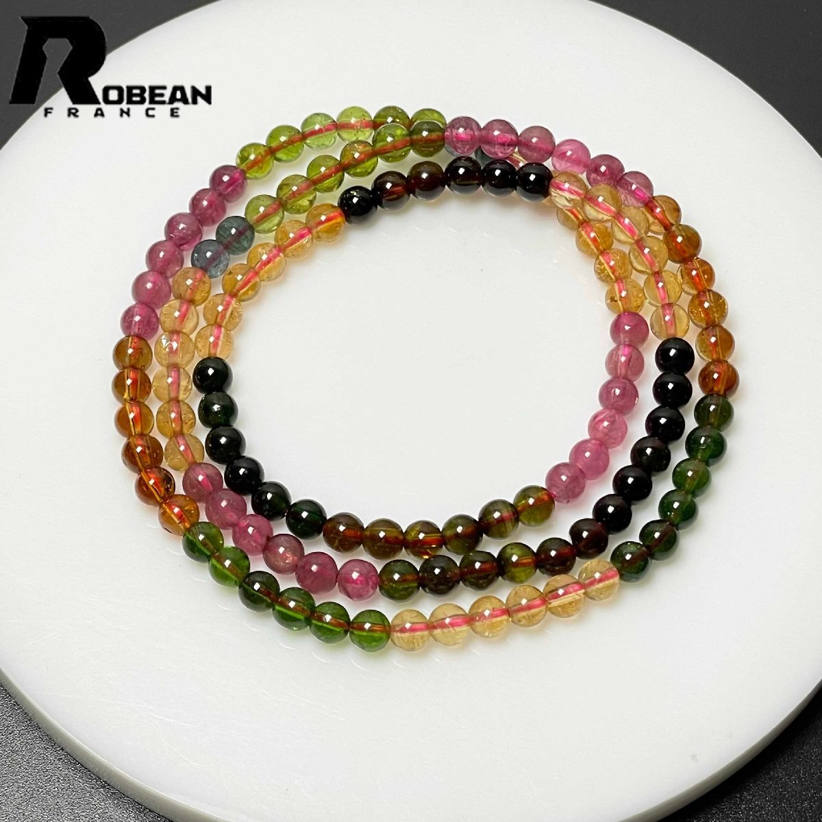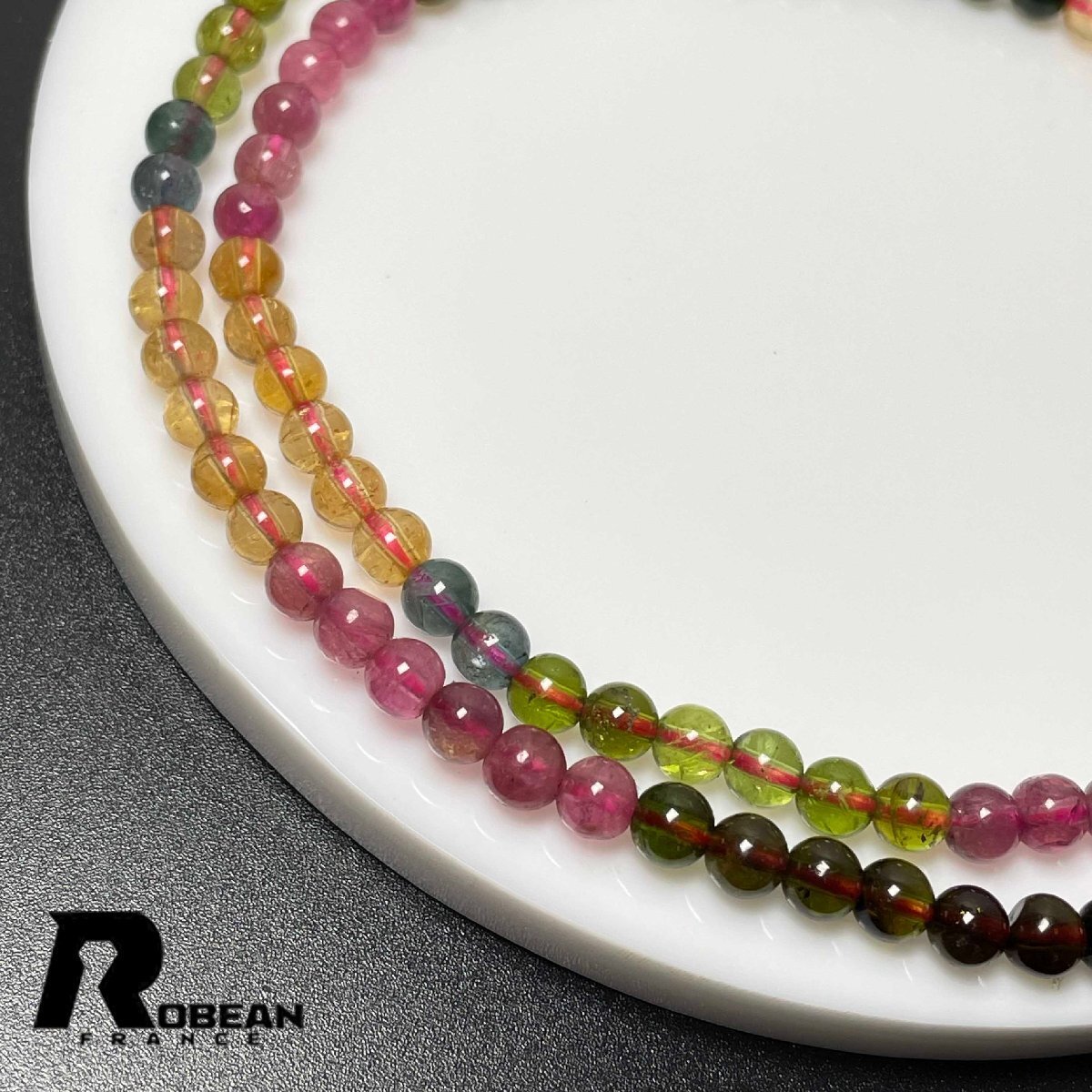高級 EU製 定価82万円★ROBEAN・ウォーターメロントルマリン★3本巻きブレスレット パワーストーン 天然石 綺麗 約4.6-4.9mm M0208212