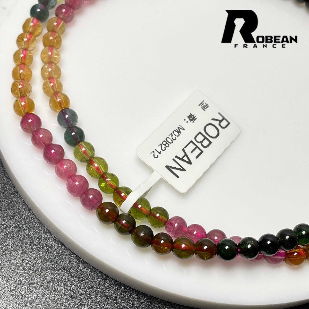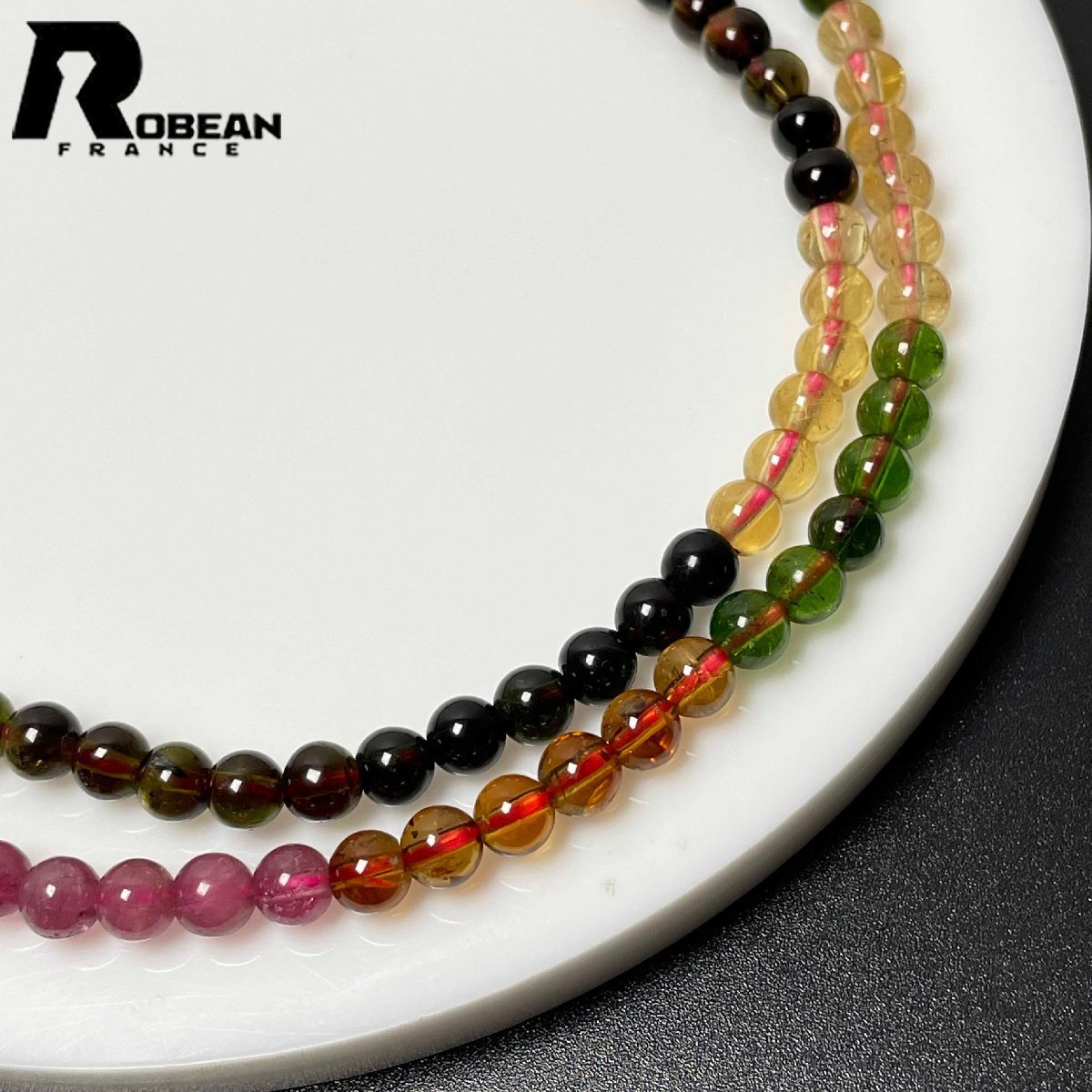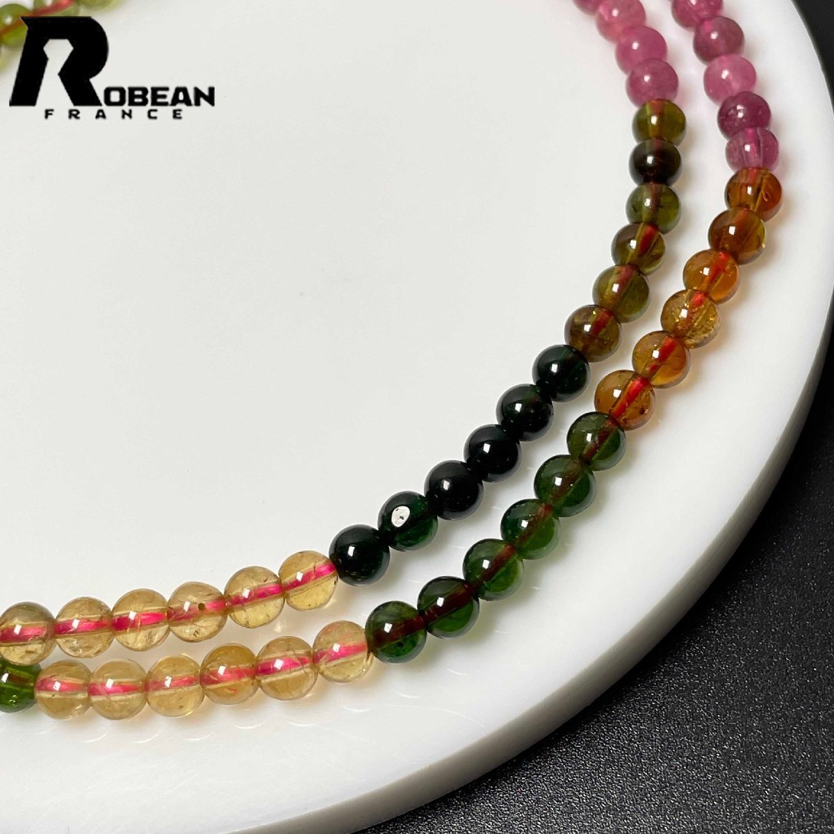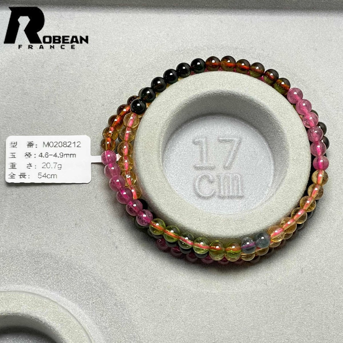 高級 EU製 定価82万円★ROBEAN・ウォーターメロントルマリン★3本巻きブレスレット パワーストーン 天然石 綺麗 約4.6-4.9mm M0208212