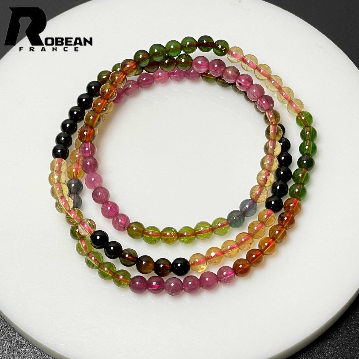 高級 EU製 定価82万円★ROBEAN・ウォーターメロントルマリン★3本巻きブレスレット パワーストーン 天然石 綺麗 約4.6-4.9mm
