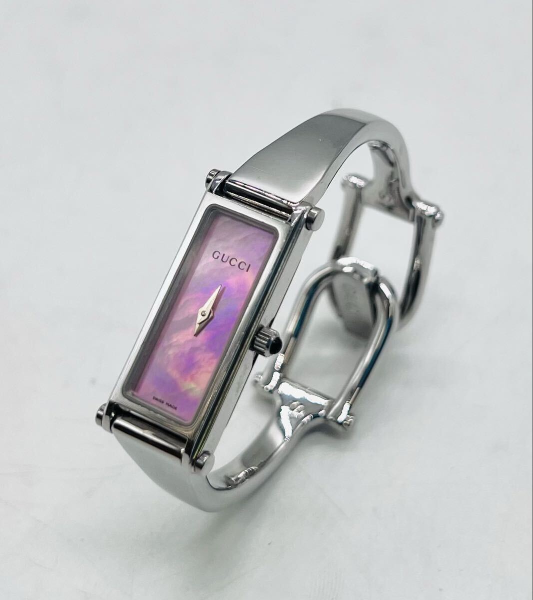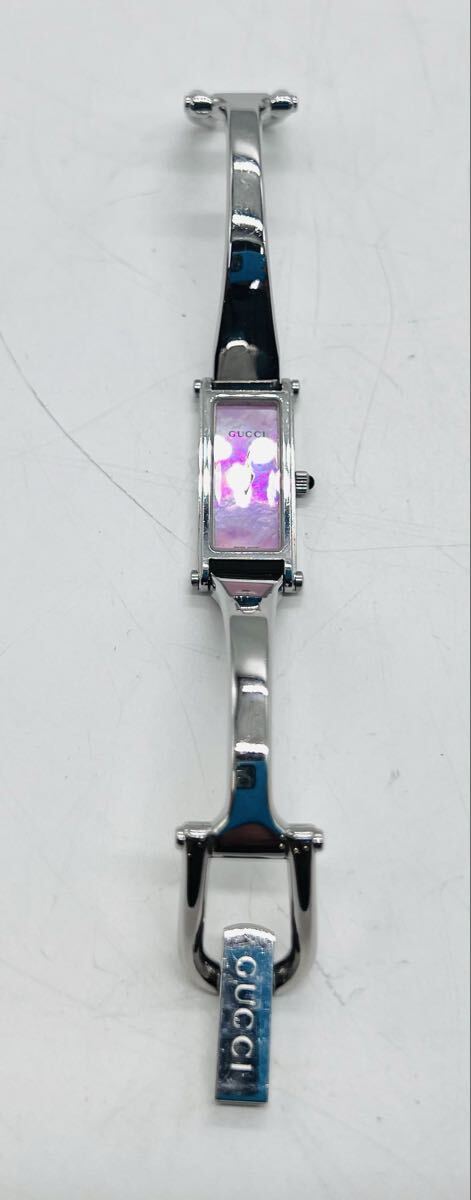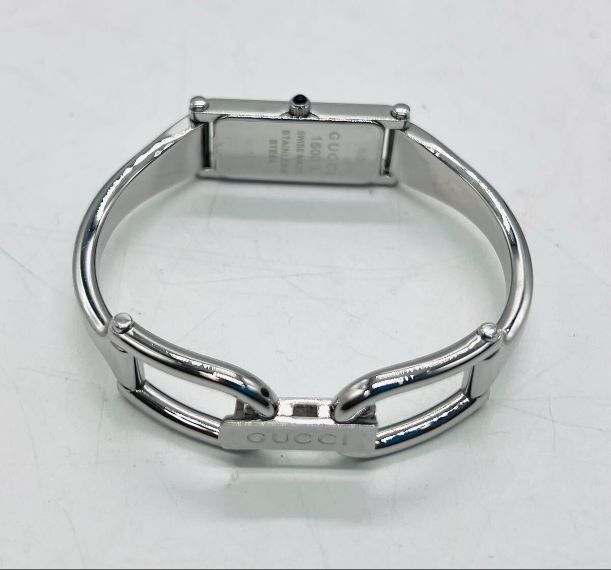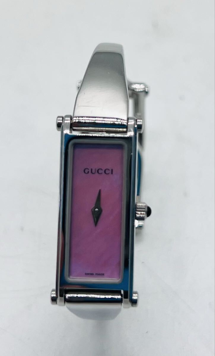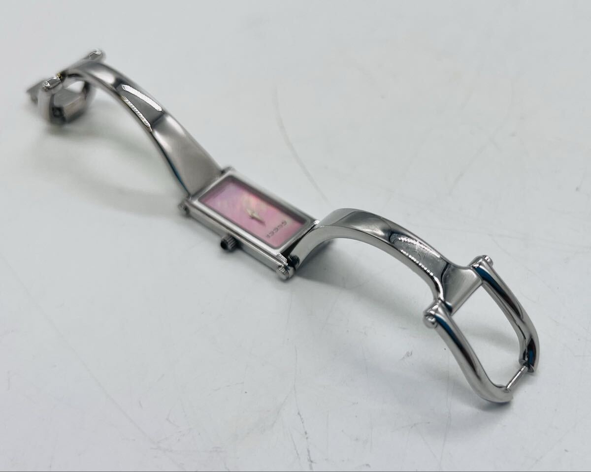 中古品 GUCCI グッチ 1500L STAINLESS STEEL クオーツ 腕時計 ブレスレット バングルウォッチ ピンク