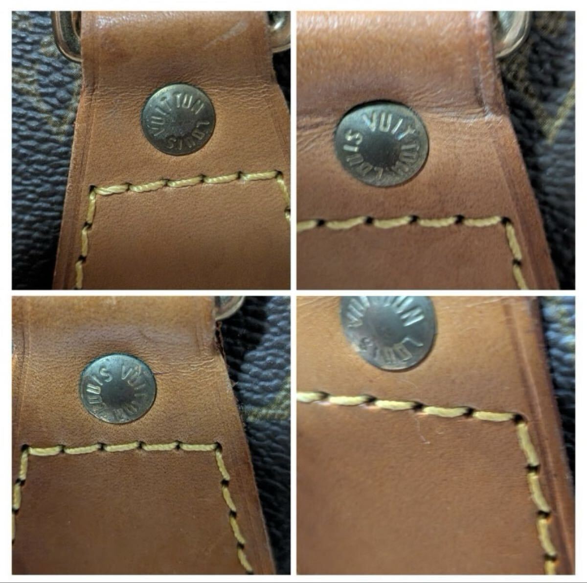 モノグラムキャンバスのボストンバッグ、レザーのハンドル付き。