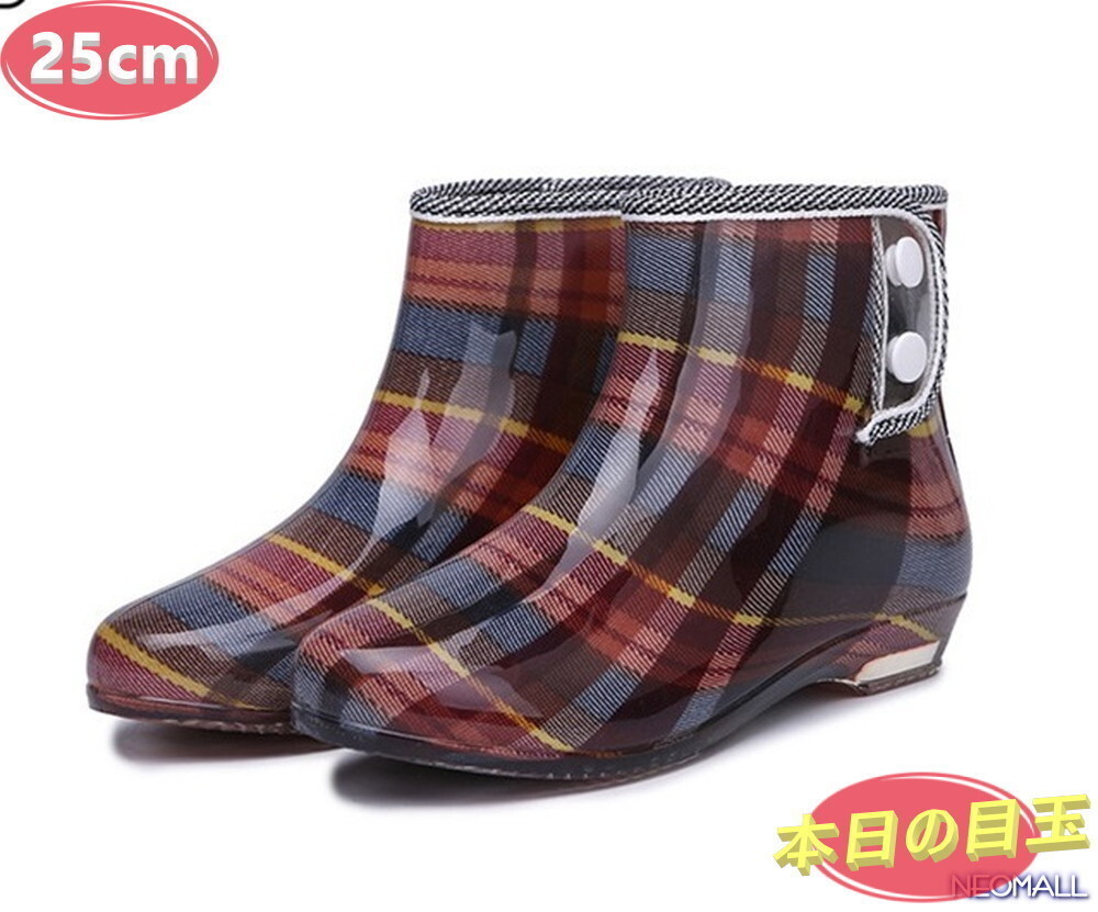 1スタ☆ レディース お洒落な レインブーツ【496】 25.0cm カラーD レインシューズ 雨靴 梅雨対策 防滑 防水 雨 雪 晴れ兼用