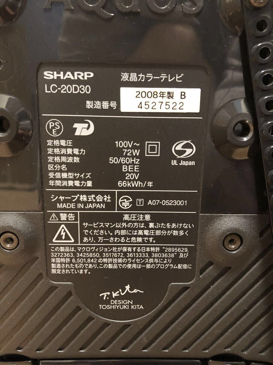 注意事項 : 画面に写真9の様な汚れやキズが数カ所ありますが視聴に支障ありません。