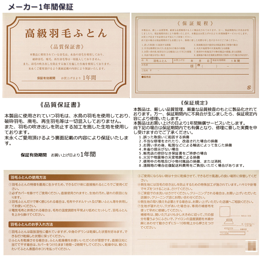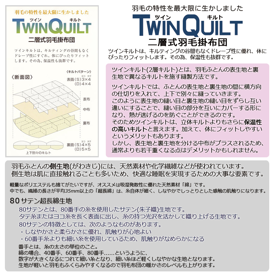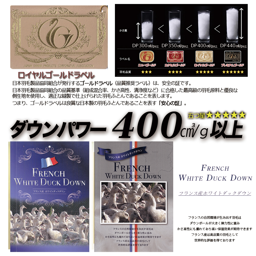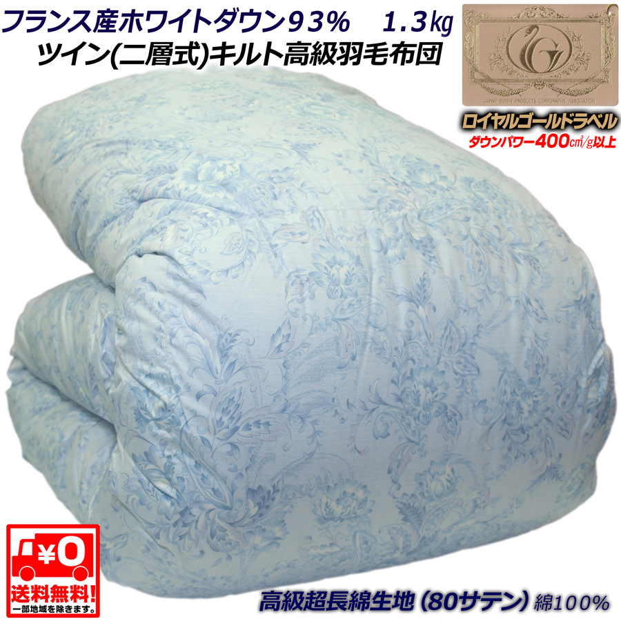| 【ロイヤルゴールドラベル】フランス産ホワイトダウン93%ツインキルト羽毛ふとん |
