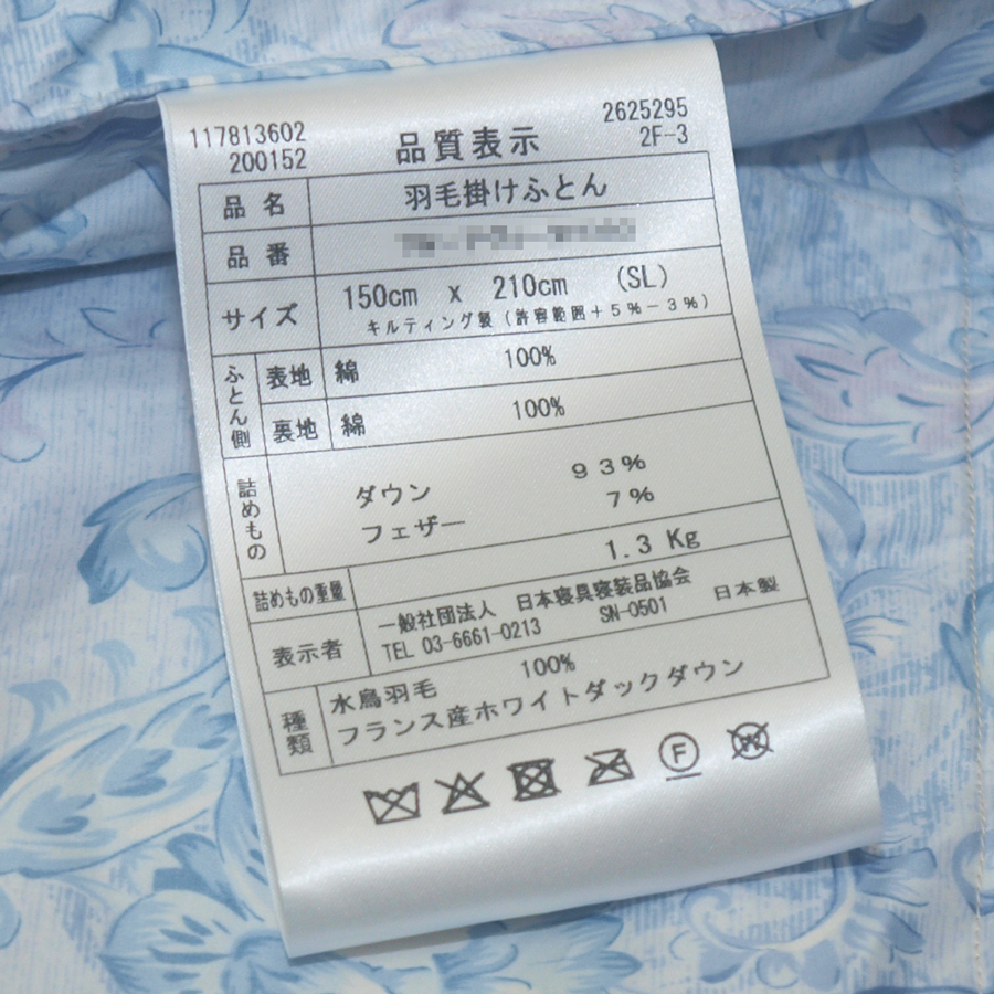 | 【ロイヤルゴールドラベル】フランス産ホワイトダウン93%ツインキルト羽毛ふとん |
