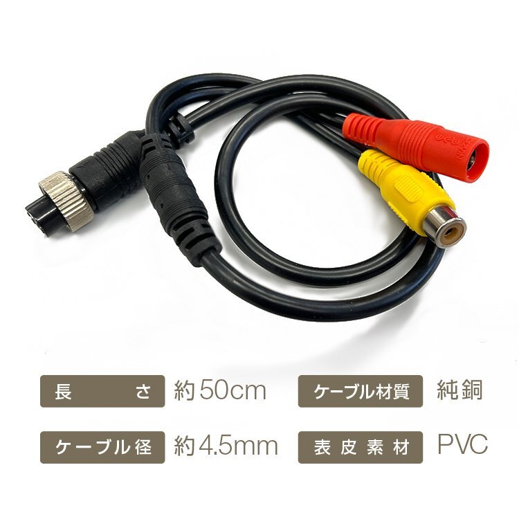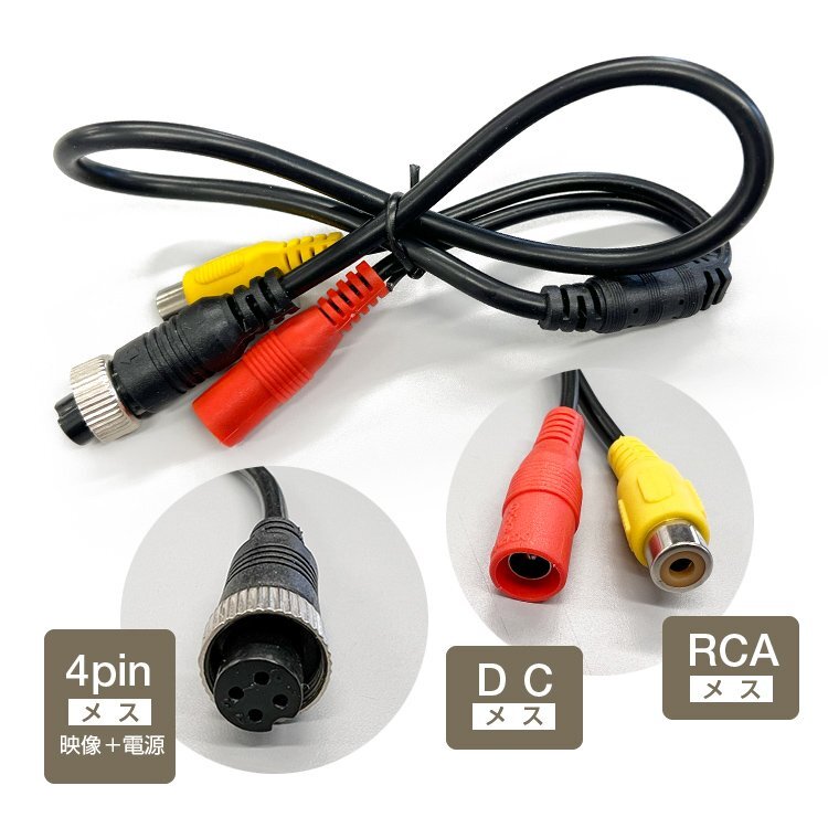 ◆4pin(メス)⇔RCA(メス)+DC電源(メス) 変換アダプタ 映像/電源ケーブル 変換ケーブル 車載モニターとバックカメラの接続に 同軸ケーブルをコンポジットに変換 4PINとRCA互換【DC電源端子 オスタイプ】4PM2DCM