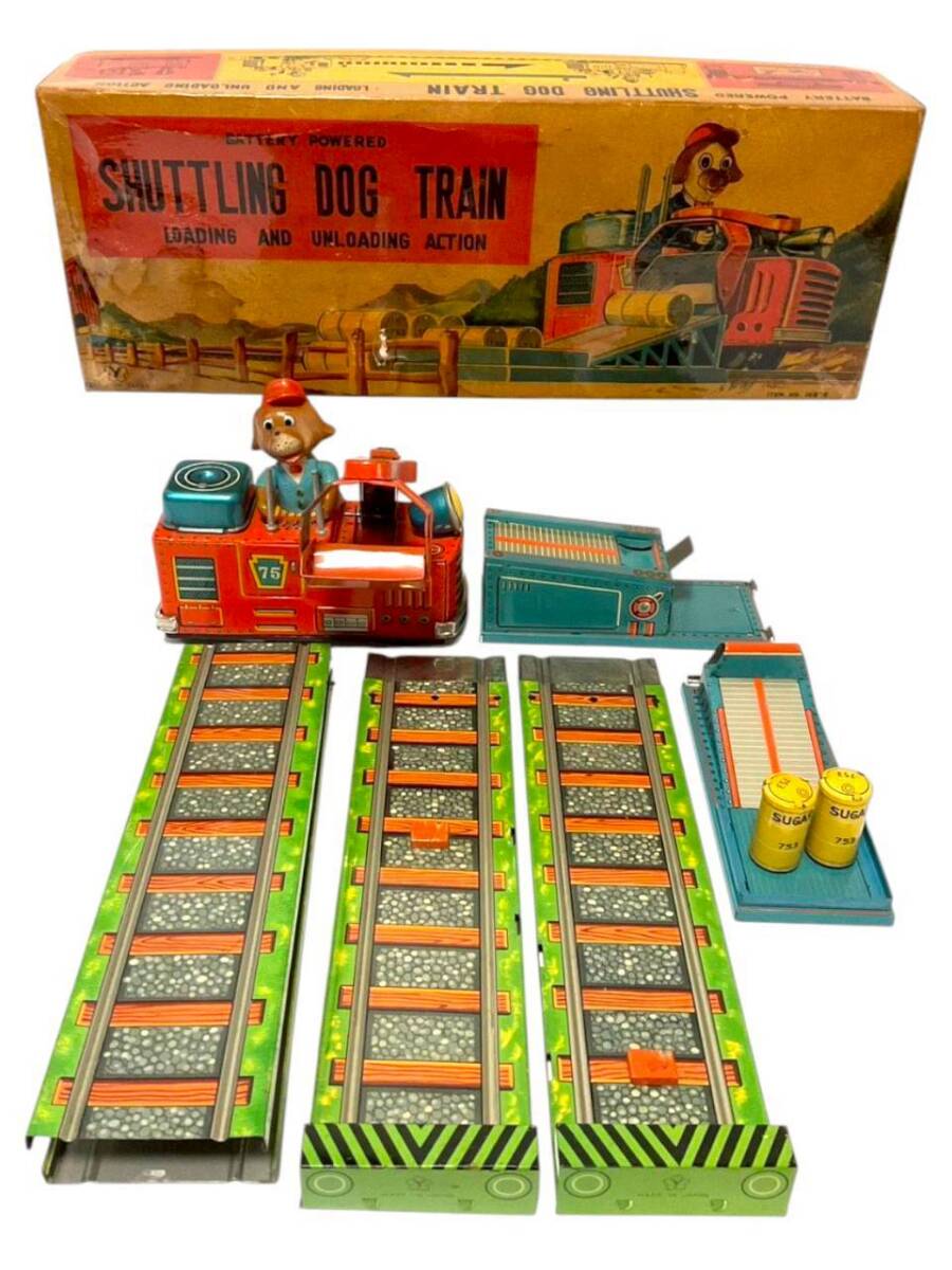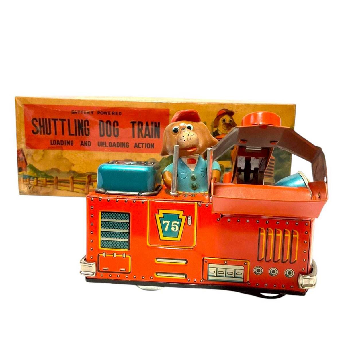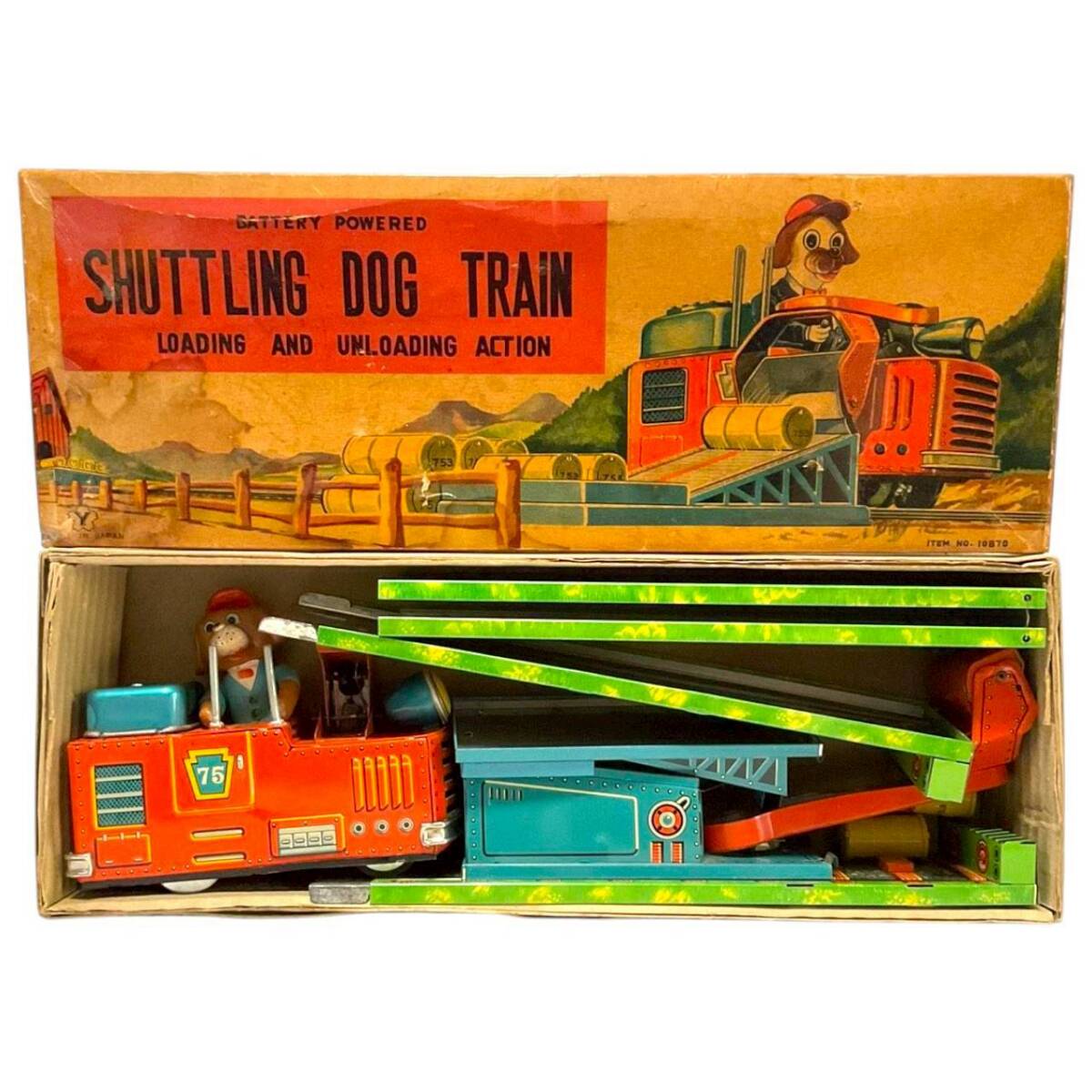 C1: 【新品同様 動作良好】超希少 米澤製 犬が撃つ列車 電動ブリキ玩具 40cm デッドストック