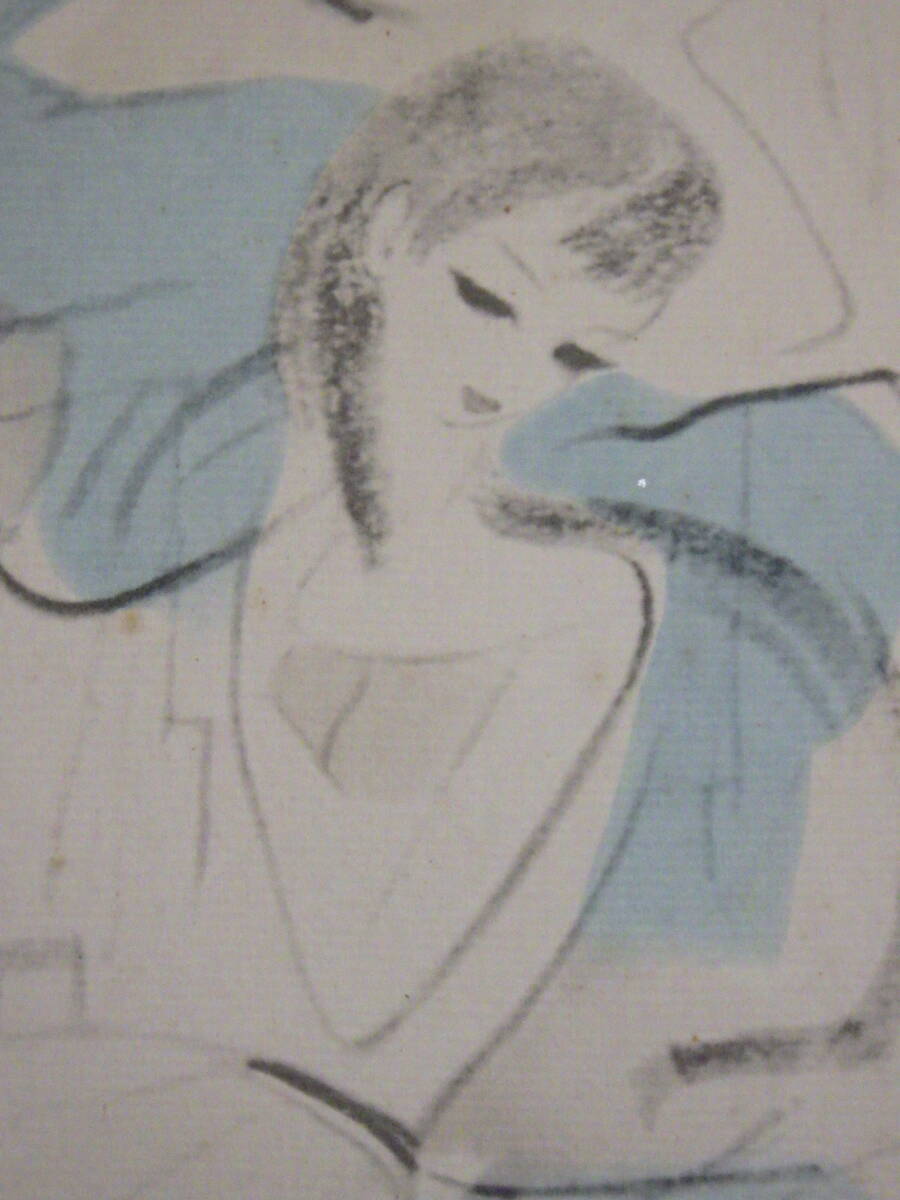 ※ 東郷青児の作品は現代でも人気が高く、版画(リトグラフ)で数10万前後で売買されており、複製・印刷物でも1~5万円くらい(新品だと6万円くらい)で取引されている。この作品は複製画です。