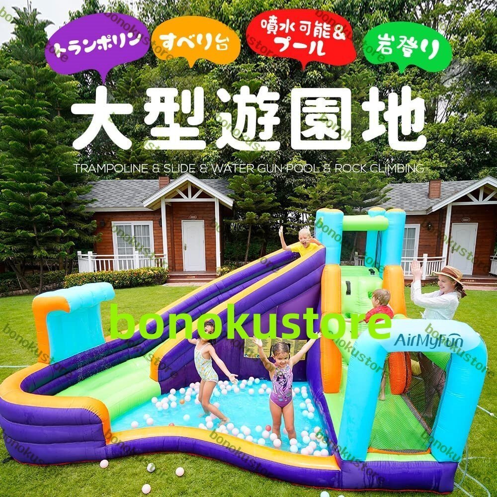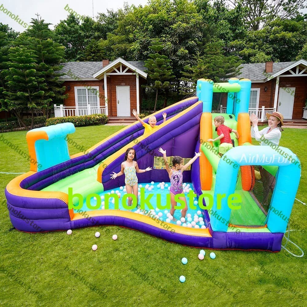 大型プール エアー 遊具 滑り台 プール すべり台 トランポリン ジャングルジム 噴水 1-4人用耐荷重120kg ①プール滑り台390*270*215cm
