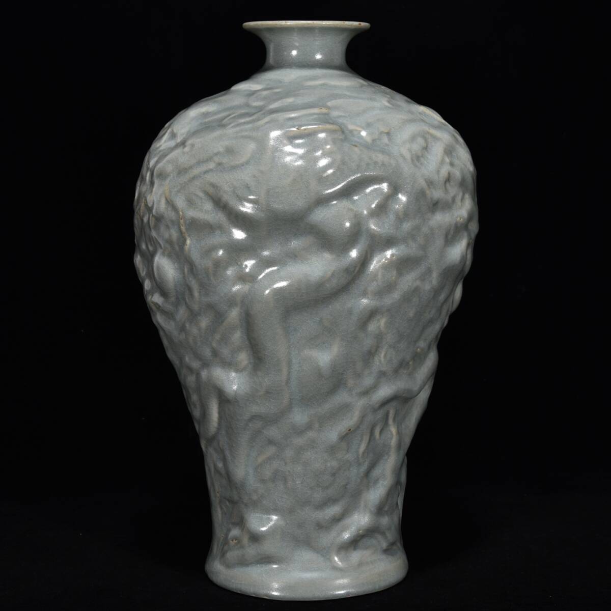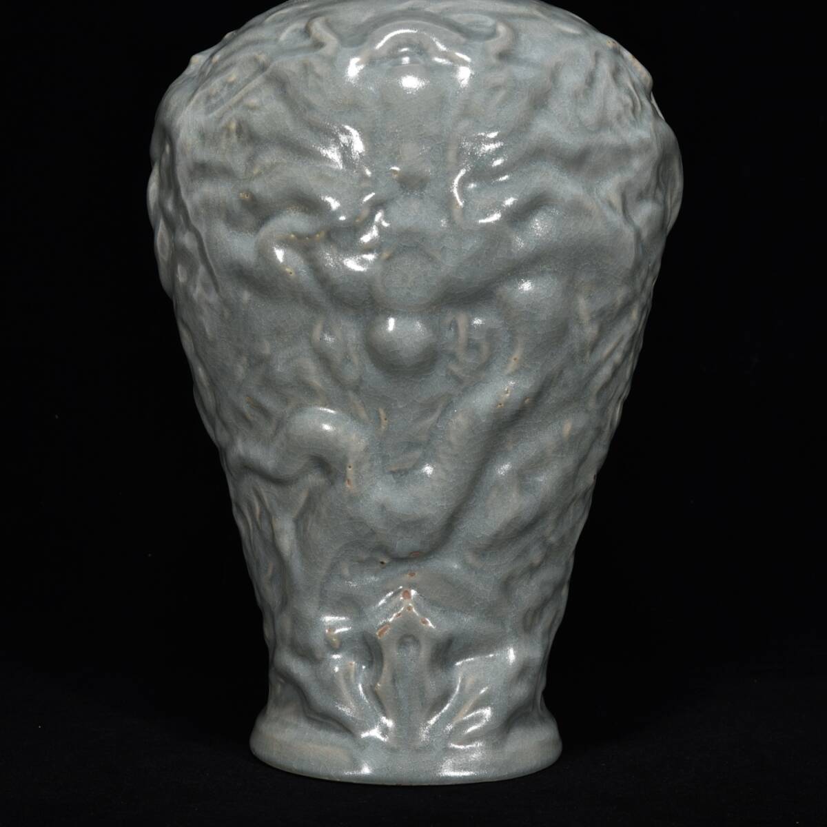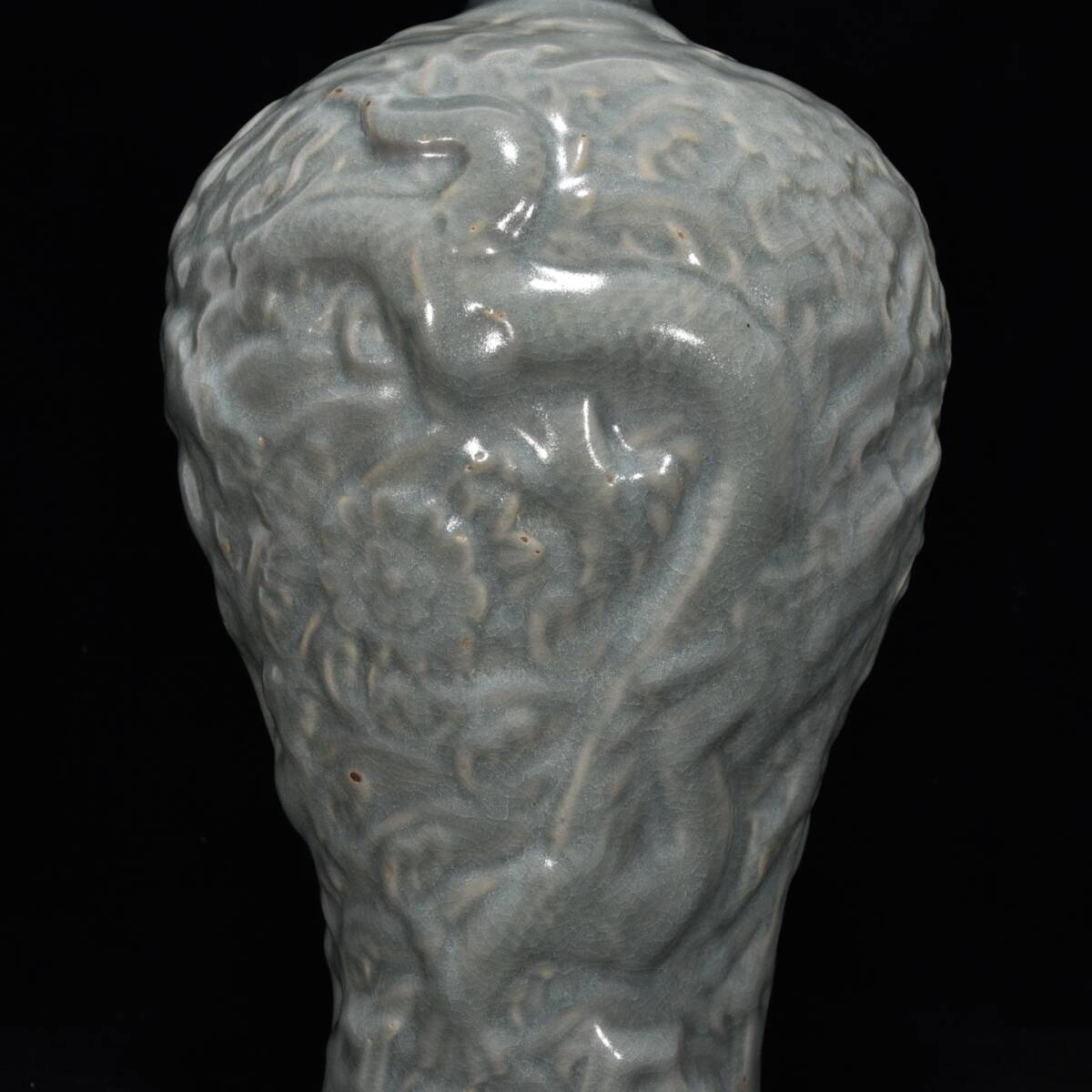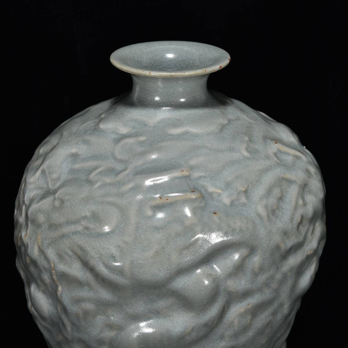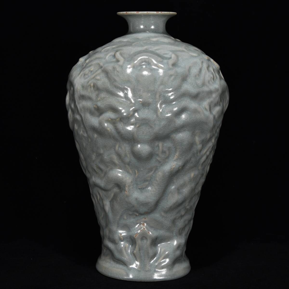 唐物 宋 汝窯 天青釉 浮彫龍紋 梅瓶 陶芸 古陶磁器 中国磁器 極細工 中国古玩 骨董品 古美味 D610