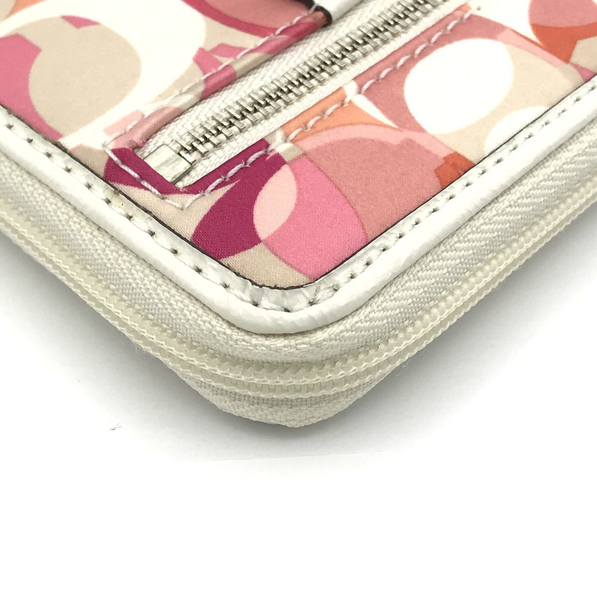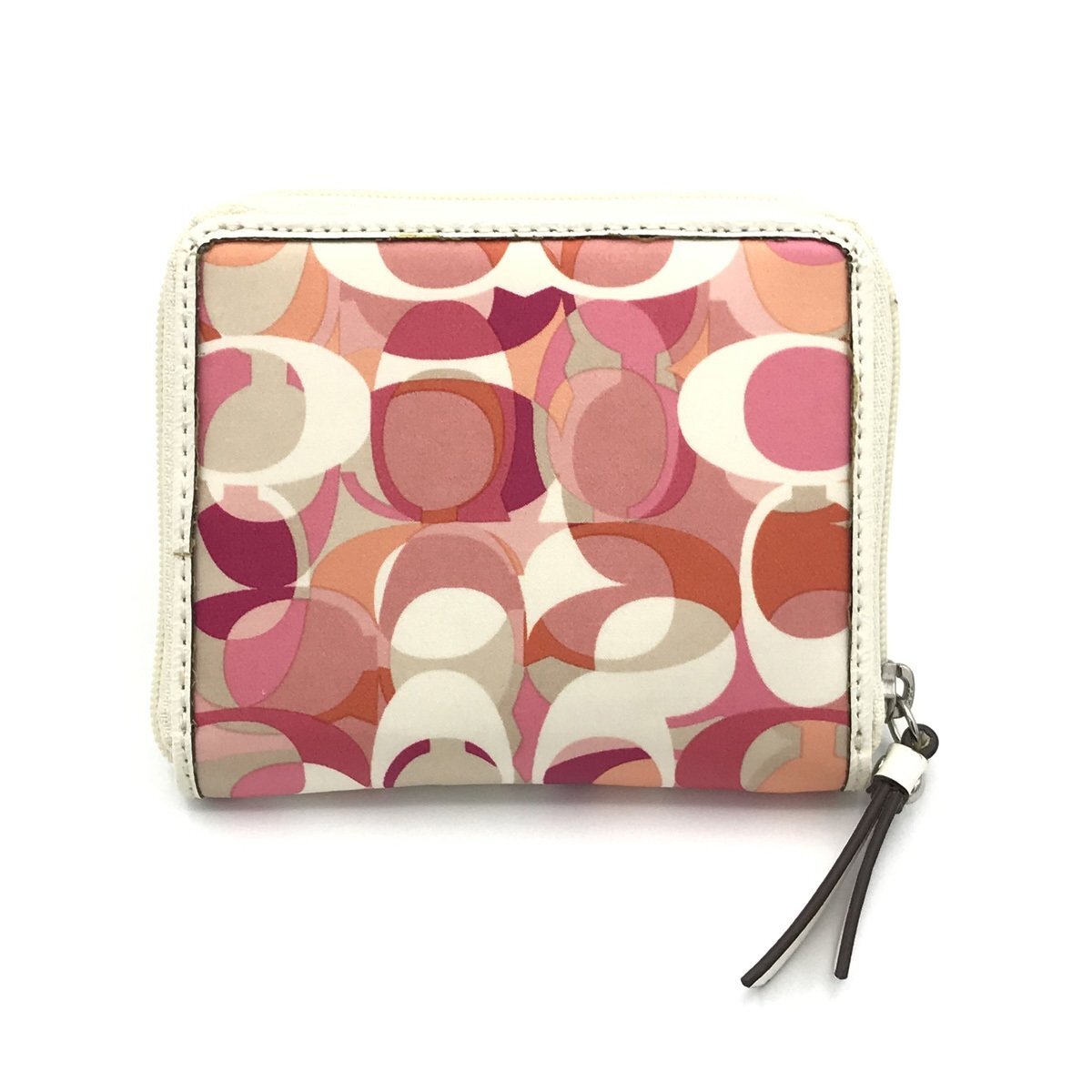 □323437 COACH コーチ ラウンドファスナー財布 シグネチャー サテン エナメル レディース ピンク モノグラム
