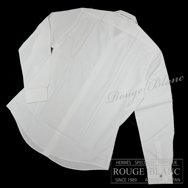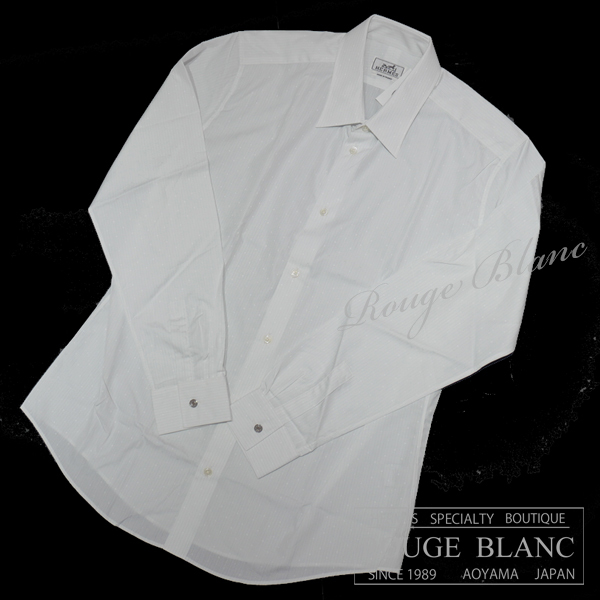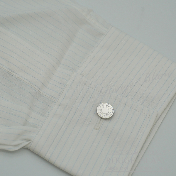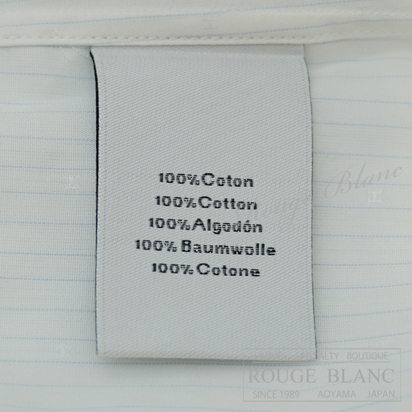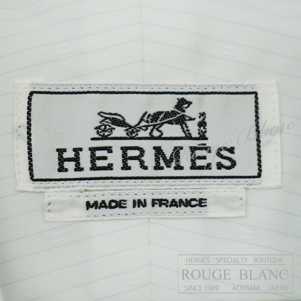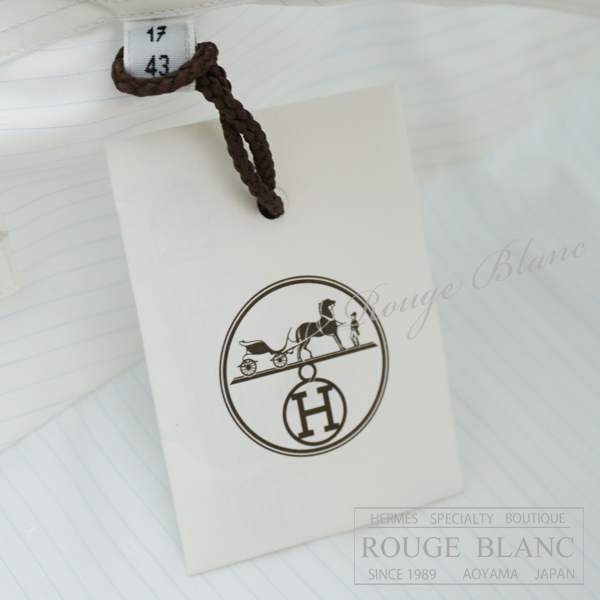 新品 エルメス メンズ ワイシャツ ホワイト×ベビーブルーストライプ Yシャツ #43 タグ付 HERMES セリエ 長袖シャツ