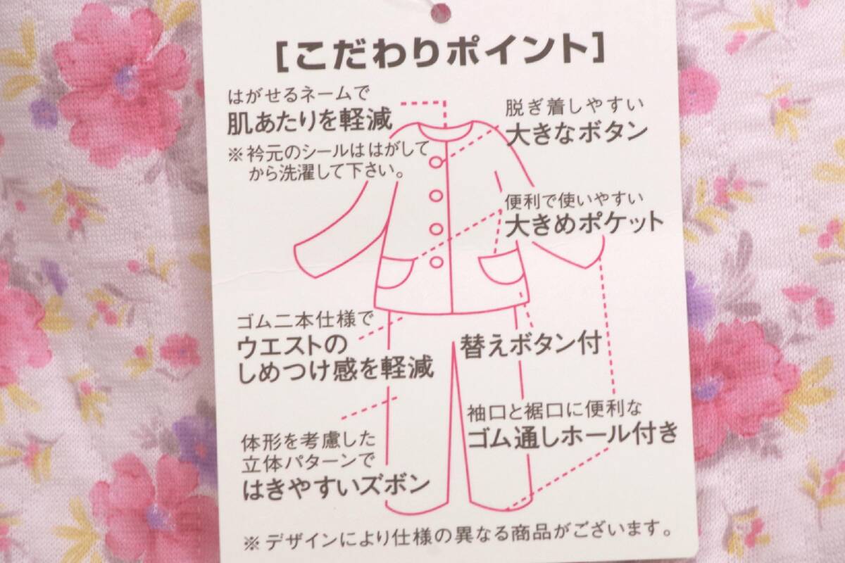脱ぎきしやすい大きなボタン。使いやすい大き目ポケット。二本仕様のゴムでウエストの締め付け感を軽減。袖口と裾口にゴム通しホール付きなど。詳細は写真をご覧ください。