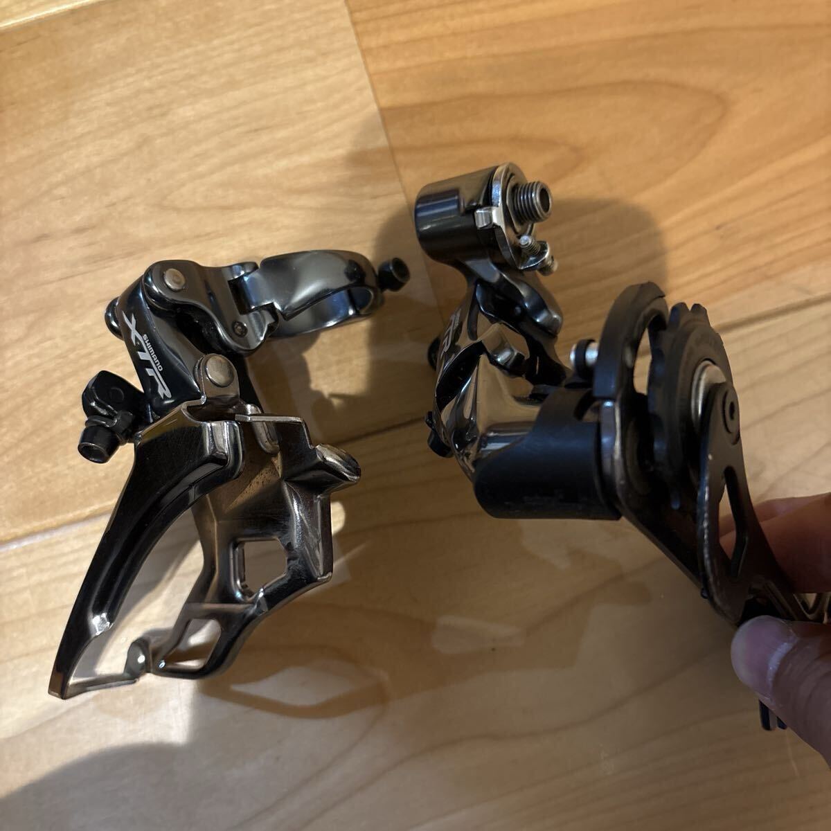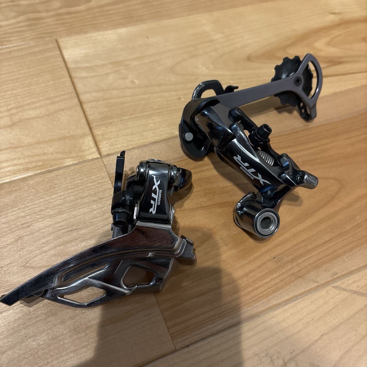 シマノXTRの前後ディレーラーになります。当オークションで購入し、数回街乗りで使用しましたが、シフト操作に慣れず、交換して室内で保管していました。今後も使用の予定がないので出品します。動作に問題はありませんが、使用や保管による傷や汚れは見られますので、きれいな商品をご希望の方は入札をお控えください。写真に写っているものが全てになります。ちなみに、リアディレーラーは、ローノーマル仕様ですのでご注意下さい。中古商品につきノークレームノーリターンでお願いします。