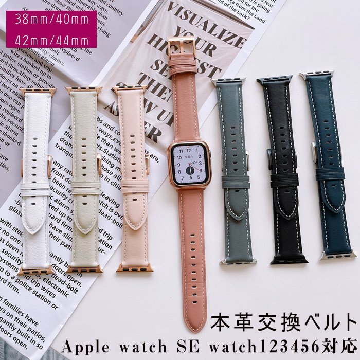 apple watch SE iwatch123456 対応 バンド 本革時計ベルト 交換バンド ベルト 通気性 軽量 高品質 男女兼用 腕時計 ☆8色/多形状選択/1点