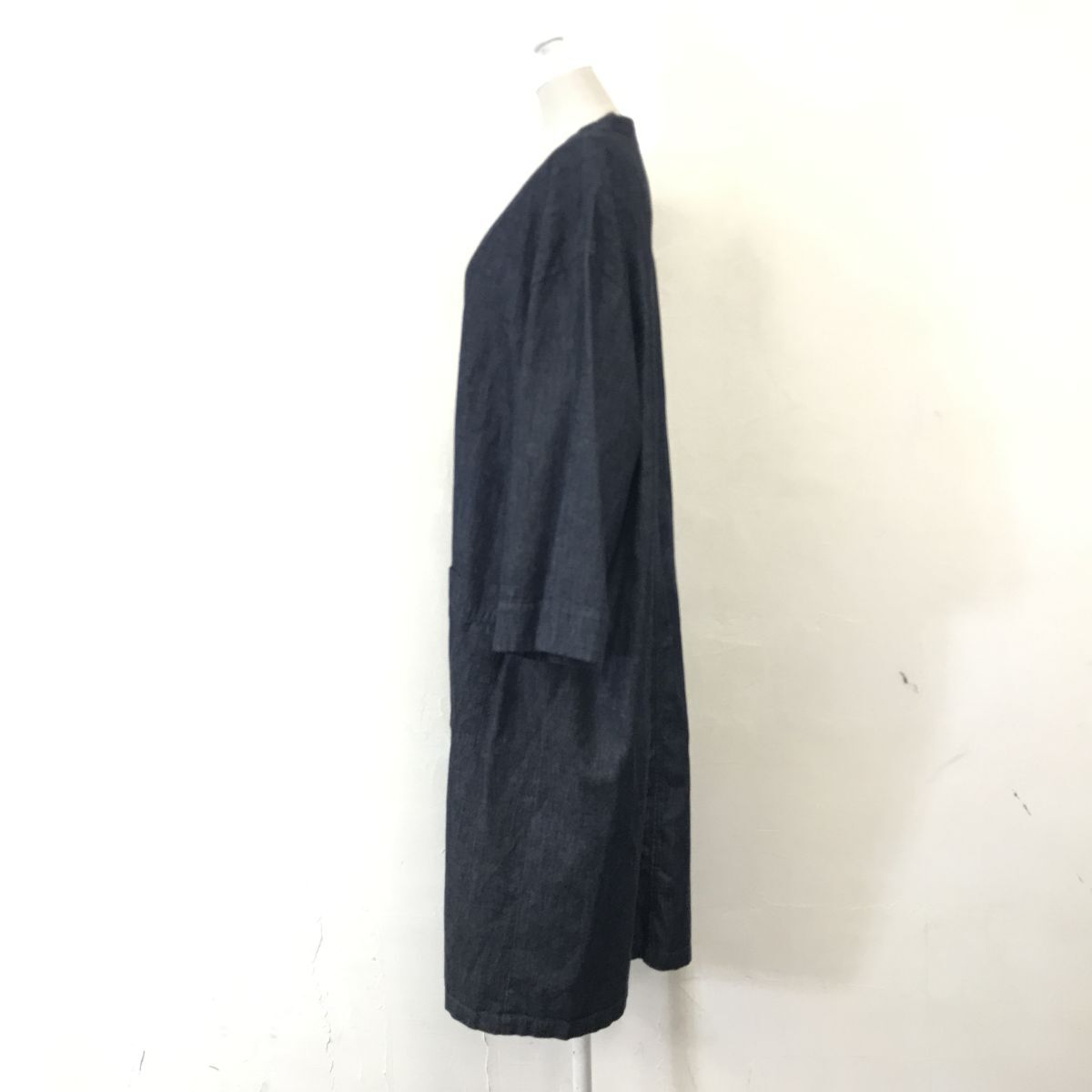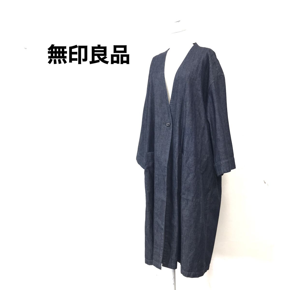 2O1926-Y◆無印良品 ムジルシリョウヒン ノーカラーロングジャケット ワンボタン スクエアヘム レディース ◆ONE size インディゴ系 綿