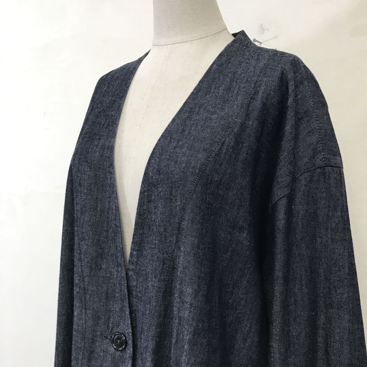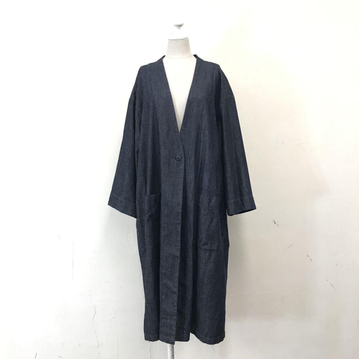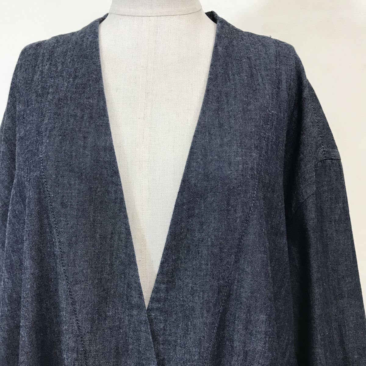 こちらは無印良品のノーカラーロングジャケットでございます。