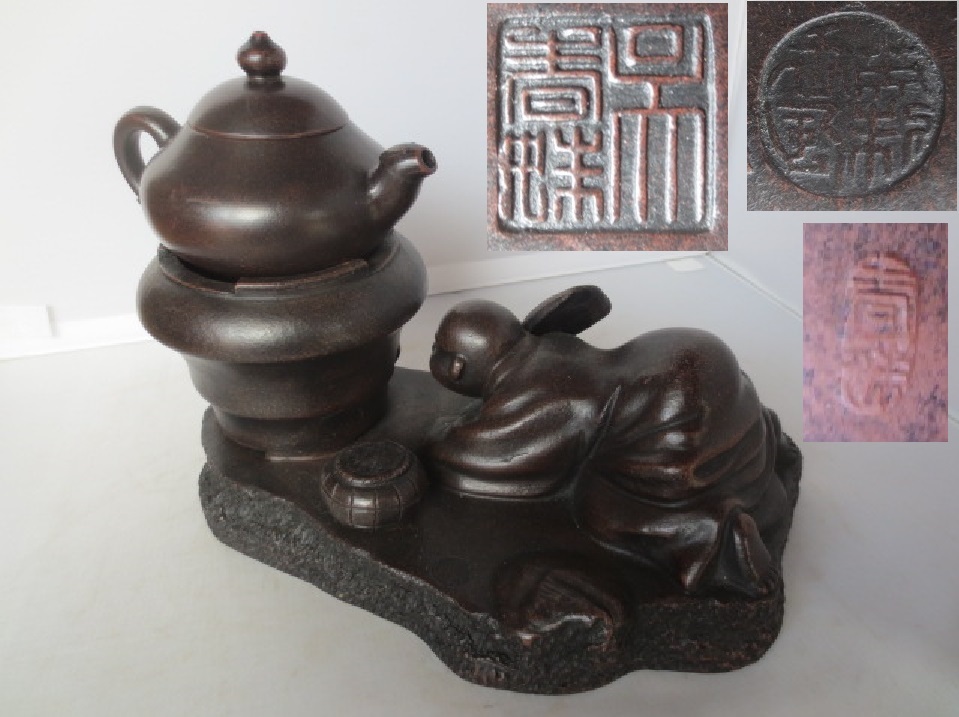 【艸】 R7/10/13-1 朱泥涼炉 急須 唐人涼炉 涼炉 最大幅約26センチ  中国古玩 13oct1