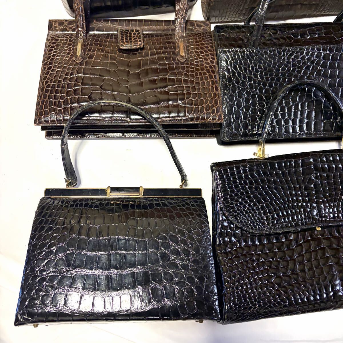 1円 まとめ⑥ クロコダイル バッグ 型押し含む 【大量 18点 セット】高級 センター取り フォーマル ハンド トート カイマン 本革 ワニ革 | ||