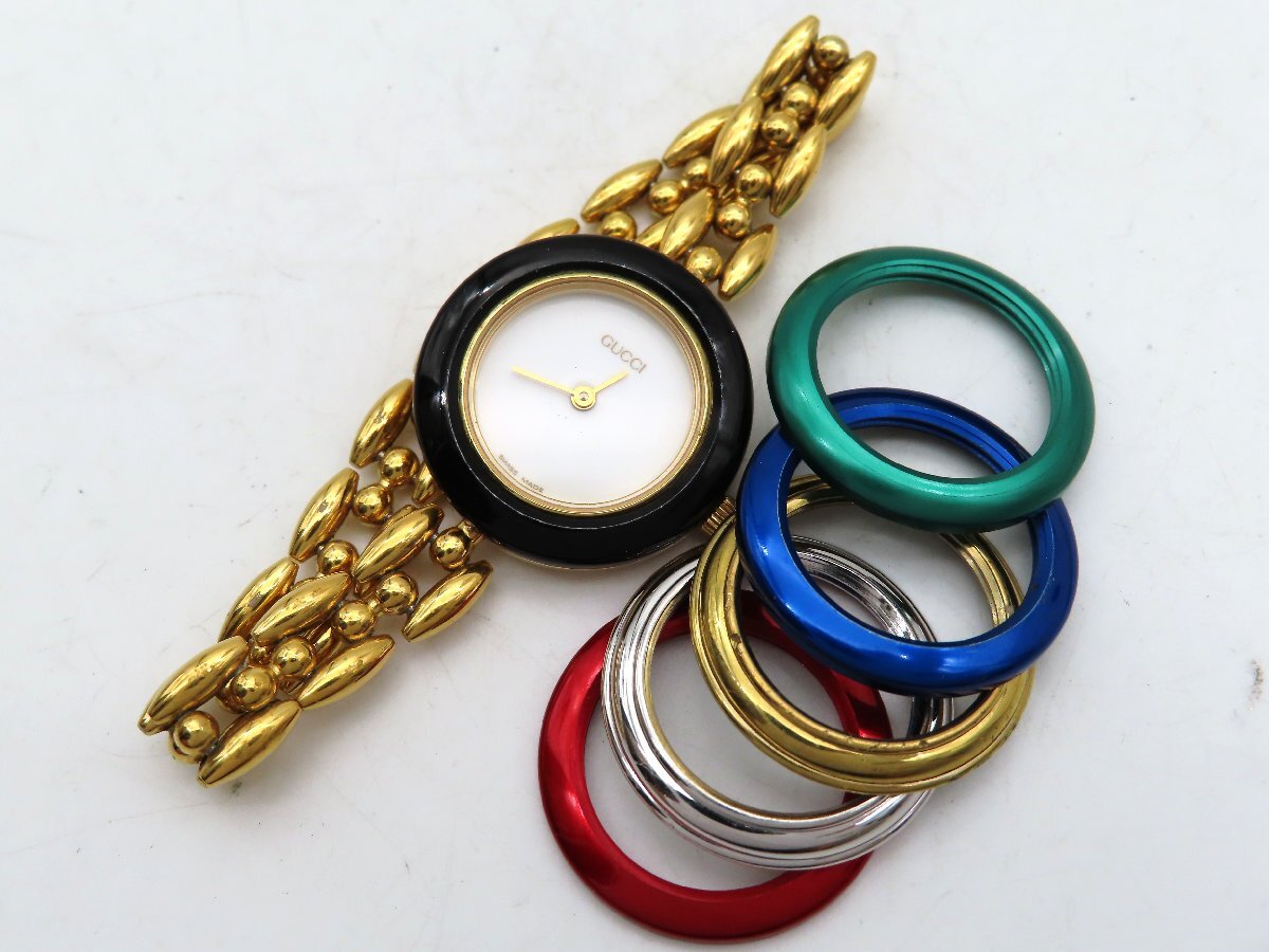 1円 グッチ 11/12.2 GP ホワイト文字盤 レディース 稼働 QZ 替ベゼル 26626 LH