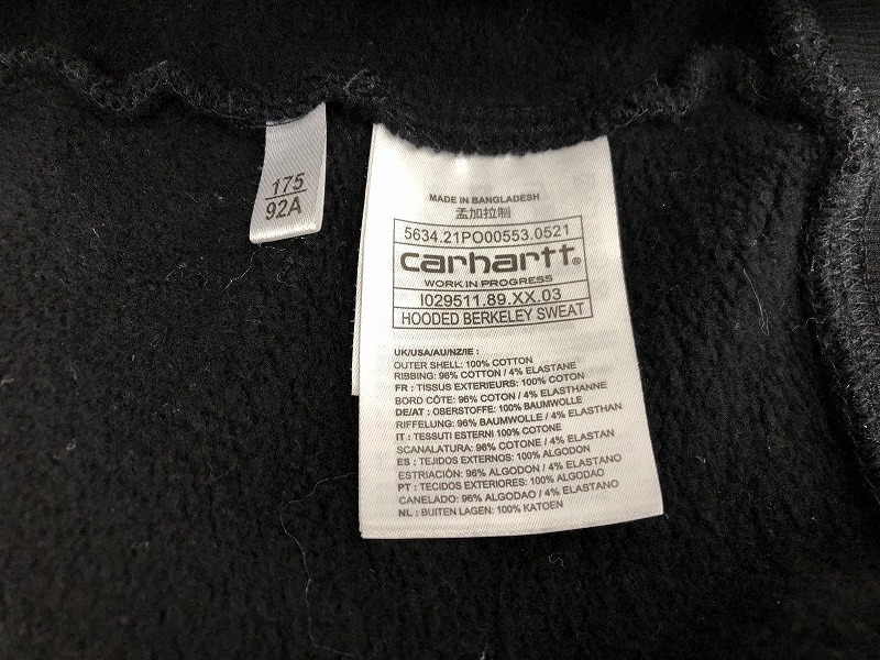 期間限定セール カーハート Carhartt フーディ パーカー Hooded Brekeley sweat ブラック系 I029511.89.XX.03