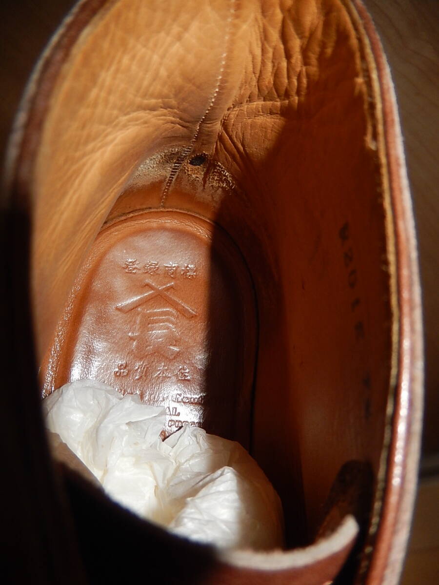 このため全体的に小傷や擦り傷があります。色むらも少しあります。昔の靴なので革質は非常に良く、履きじわはきれいについています。大きなダメージはなく、メンテナンスしながらまだまだ履いていただけます。