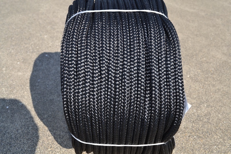 ▼ブラック、ネイビー色のスーパーエステルブレイド16、24打ちマリンロープは、近年マリーナの流行の係留ロープ、アンカーとしてもてはやされております。