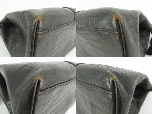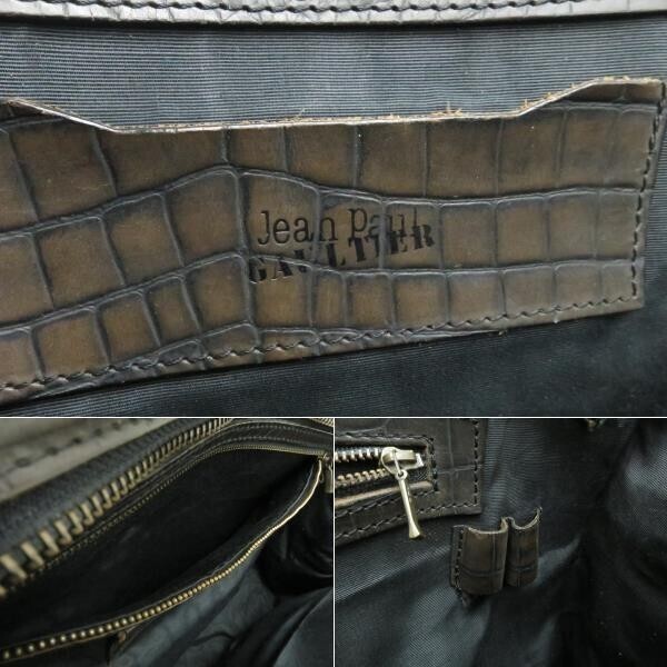 Jean Paul GAULTIER ジャンポールゴルチエ クロコ型押しレザー ハンドバッグ ブリーフケース お洒落な ダークブラウン