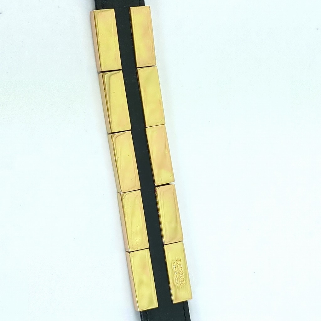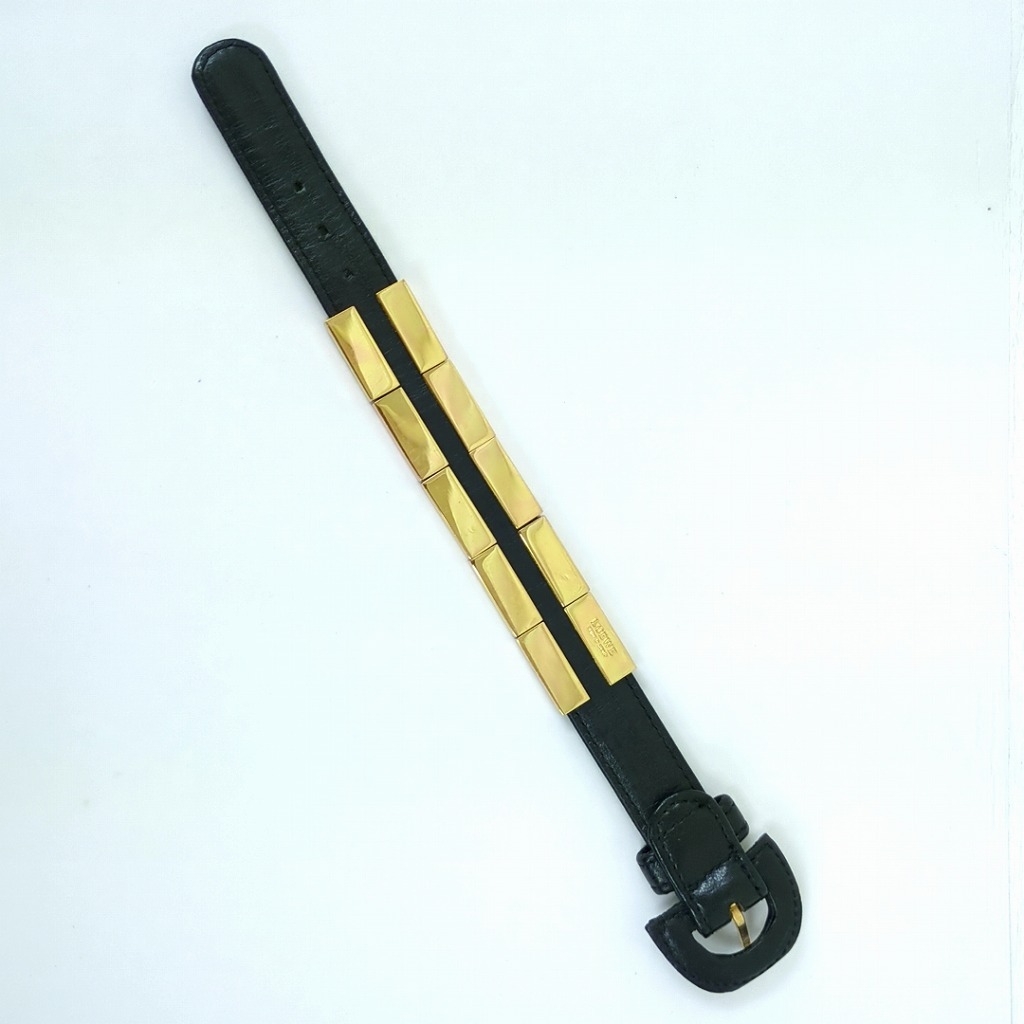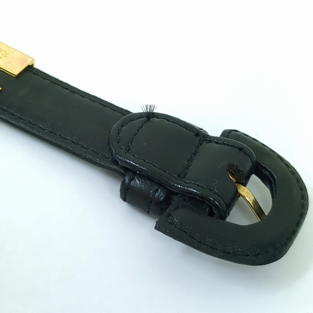 1006-7oji9240O ロエベ レザー キューブ チャーム ブレスレット ブラック ゴールド金属 スペイン製 【コンディション】 金属に小傷や少し変色があります。レザーに少しすれ傷あります。 中古品ですので写真の状態をよくご覧ください。 【サイズ】 全長:23.5cm 着用サイズ:約17.5cm~19.5cm レザー:幅約1.7cm ロゴの部分(金属):縦約2cm、横約10cm 多少の誤差はご了承ください。 【付属品】 なし