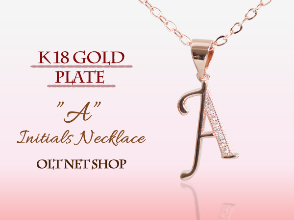 A イニシャル ネックレス レディース ピンクゴールド 18金 18kコーティング 英語 頭文字 / K18GP CZダイヤ 【 A 】イニシャルネックレス