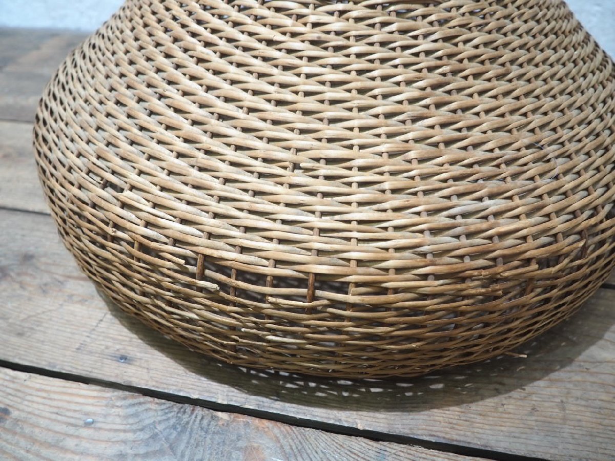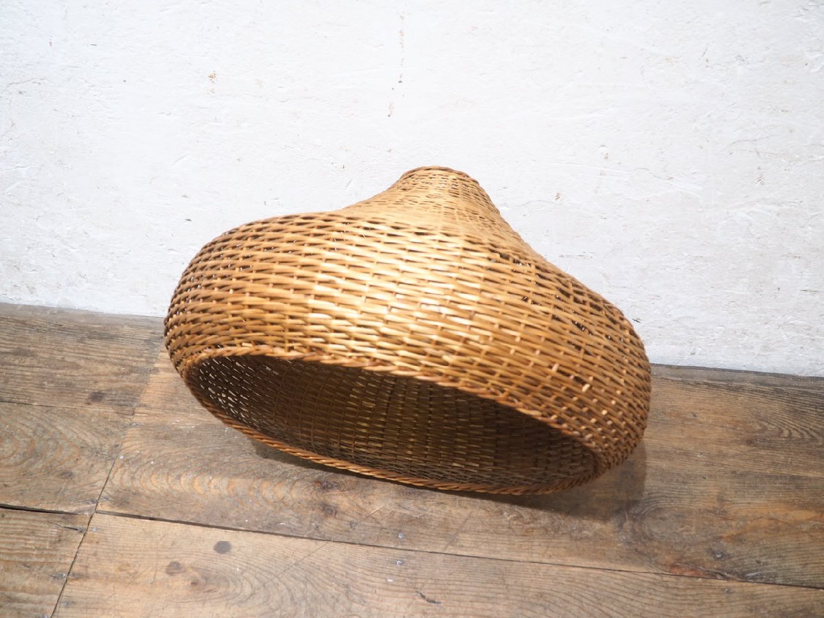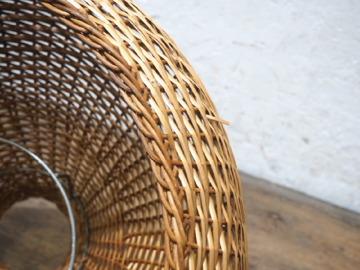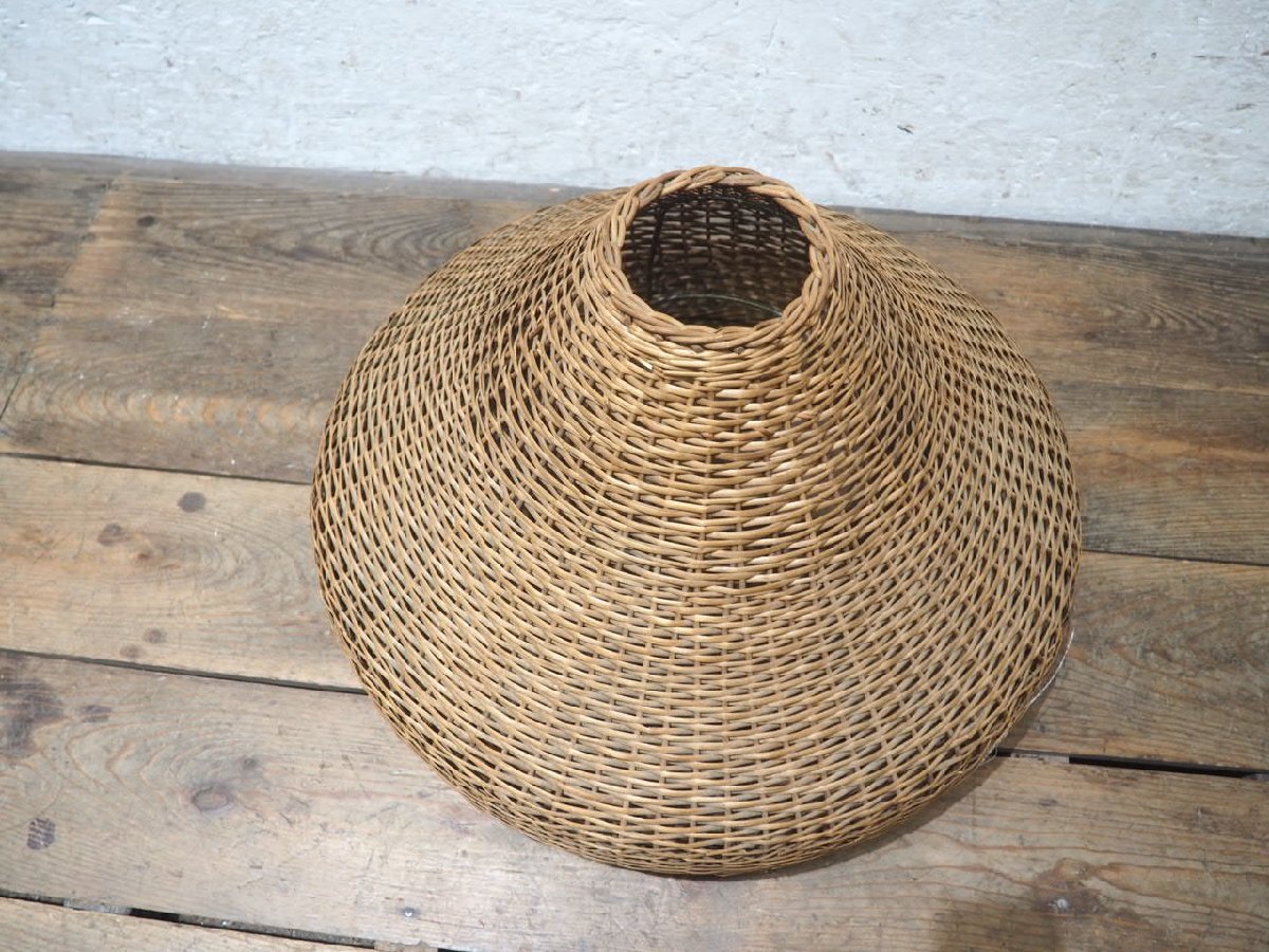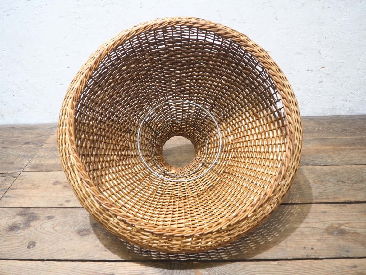 タX1556◆H36cm×W55cm◆レトロな籐の大きいシェード◆天井照明 ペンダントライト 電笠 インテリア 天然生活 ヴィンテージJ笹4
