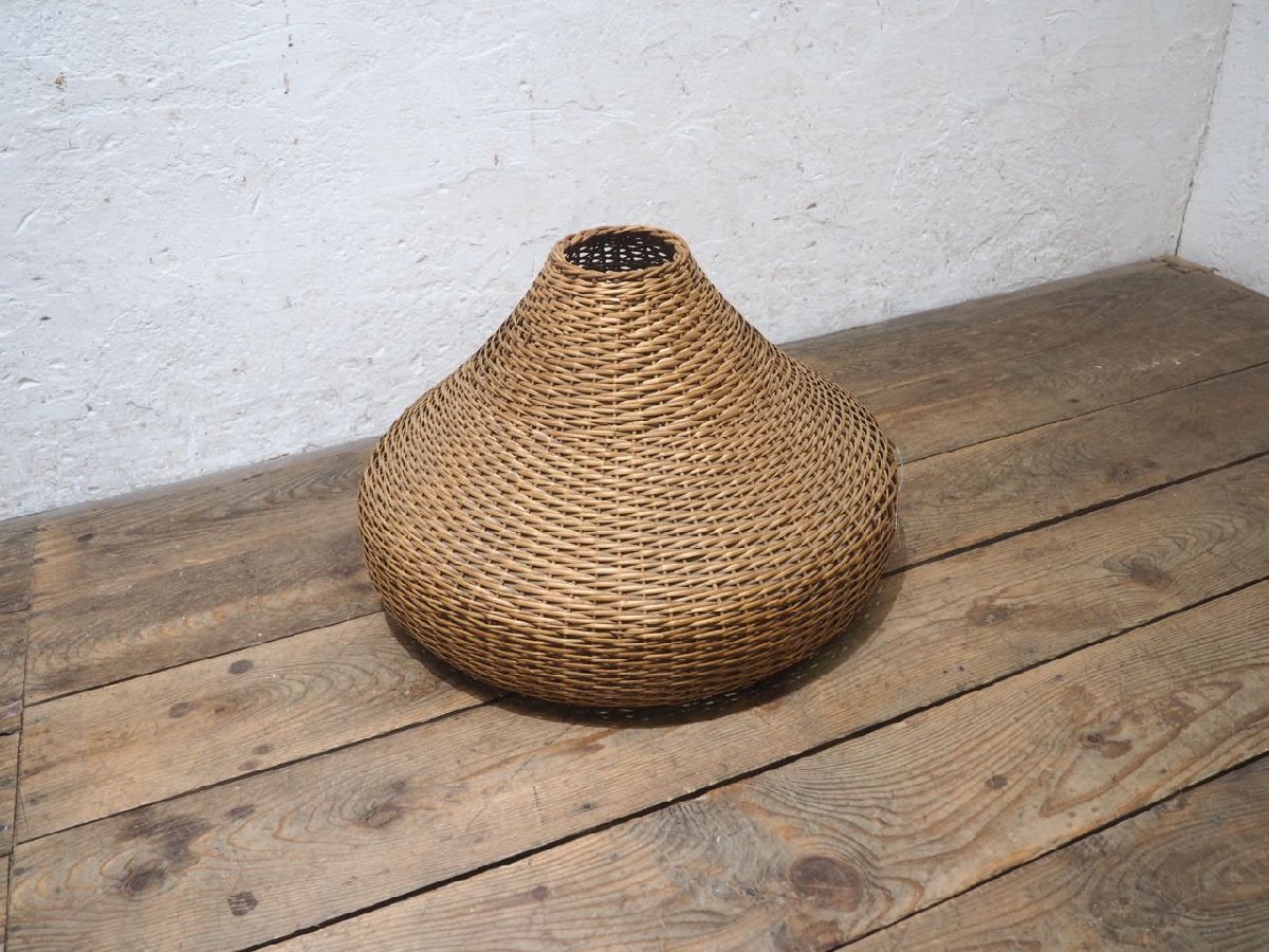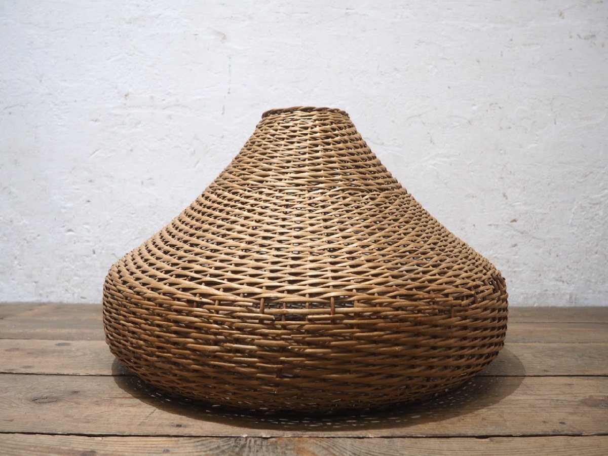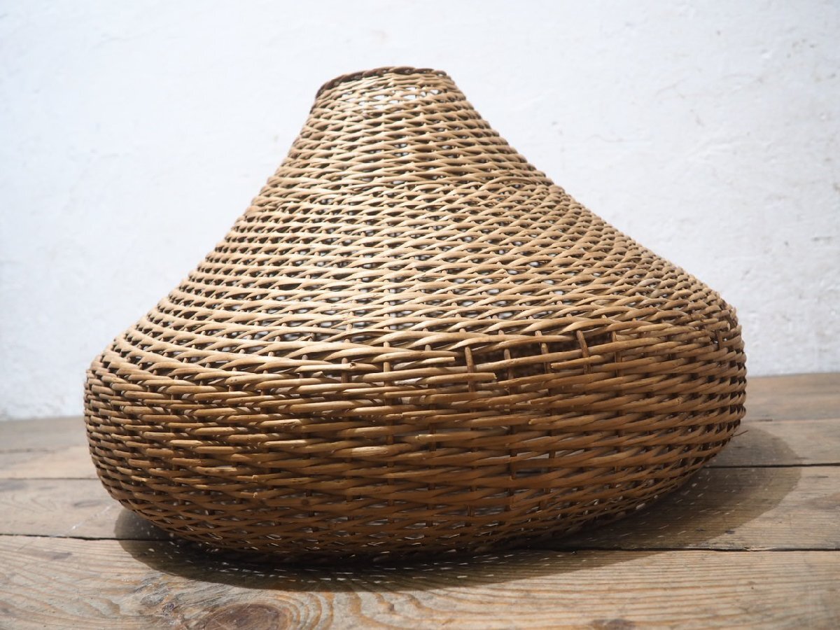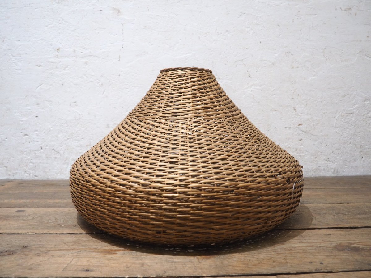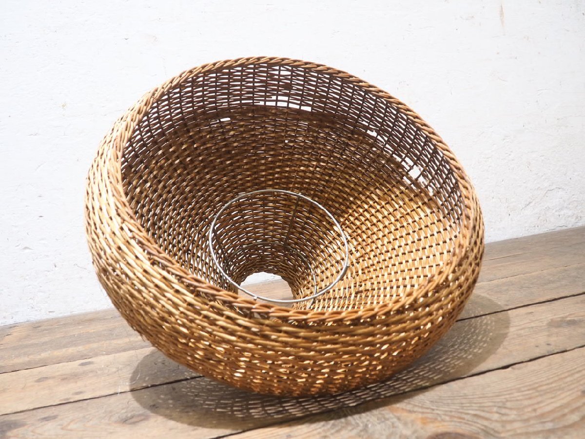 タX1556◆H36cm×W55cm◆レトロな籐の大きいシェード◆天井照明 ペンダントライト 電笠 インテリア 天然生活 ヴィンテージJ笹4