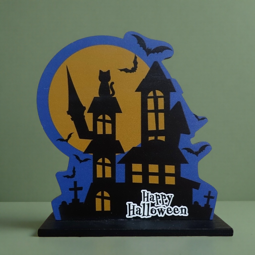 ● ハロウィンの家と猫のシルエット