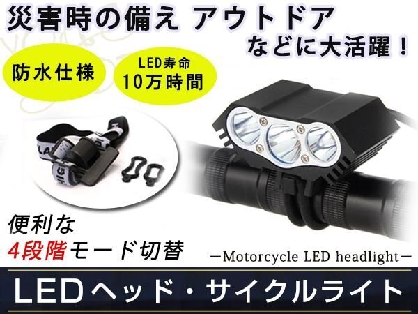 CREE T6x3灯 LED ライト 7500LM USB 自転車 バンド付き キャンプ