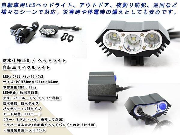 商 品 説 明CREE T6x3灯 LED ライト 7500LM USB 自転車 バンド付き キャンプ
