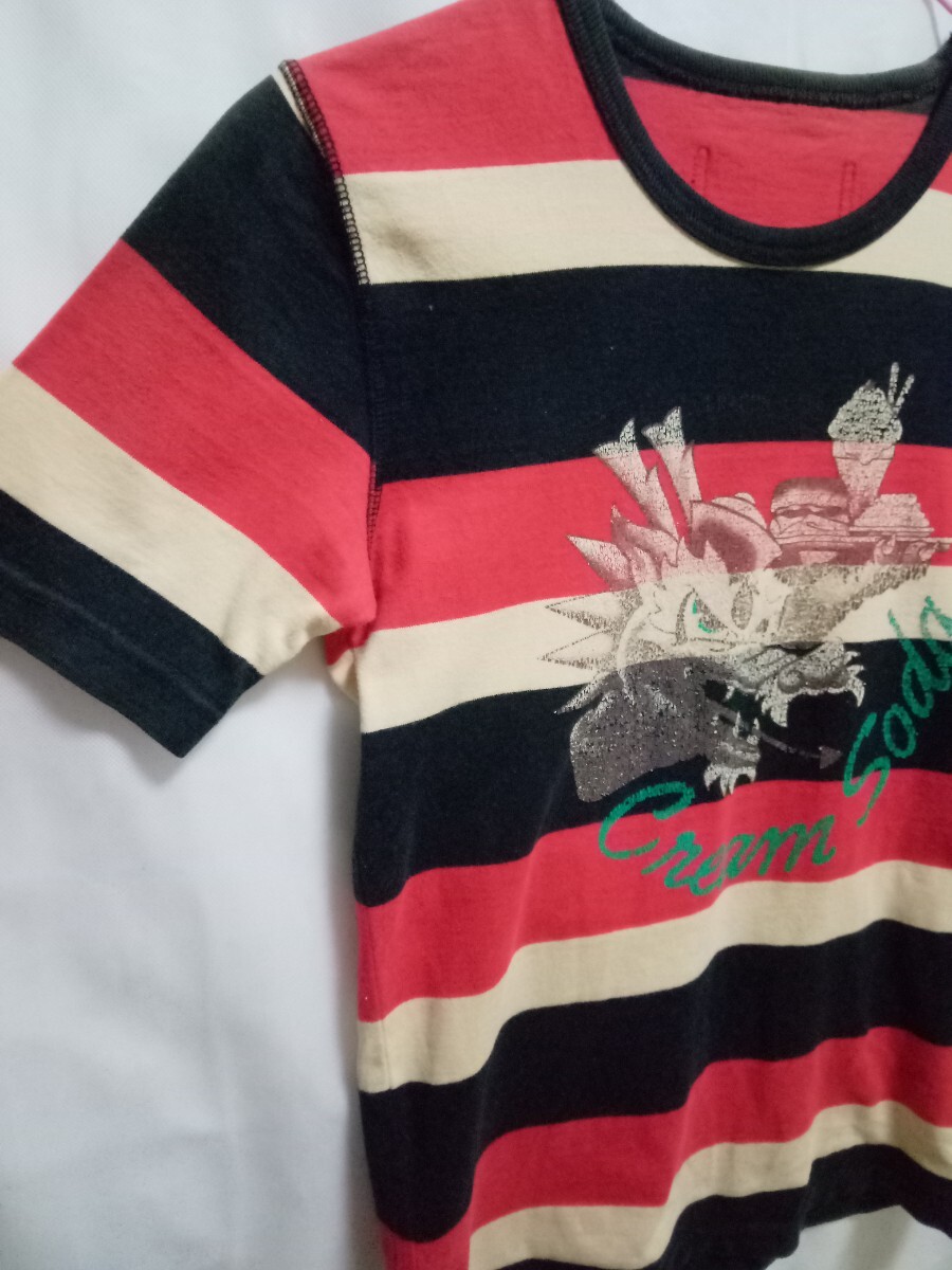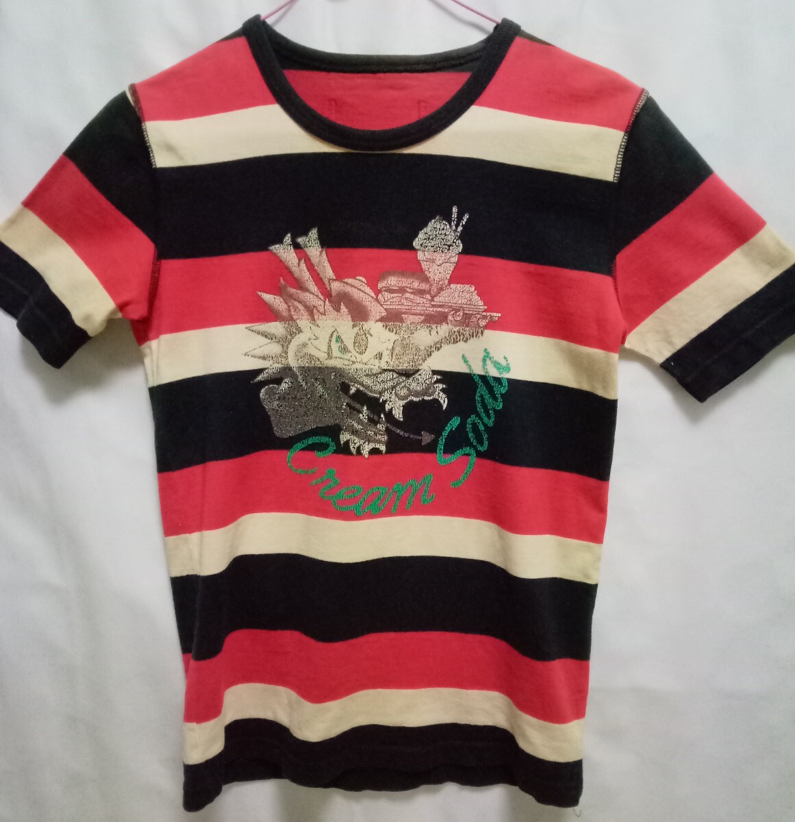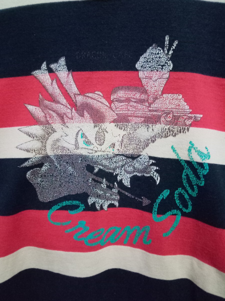 Vintage クリームソーダ / ミラクルウーマン CREAM SODA DRAGON CAFE T-SHIRT / ボーダー Tシャツ / ロカビリー / ピンクドラゴン