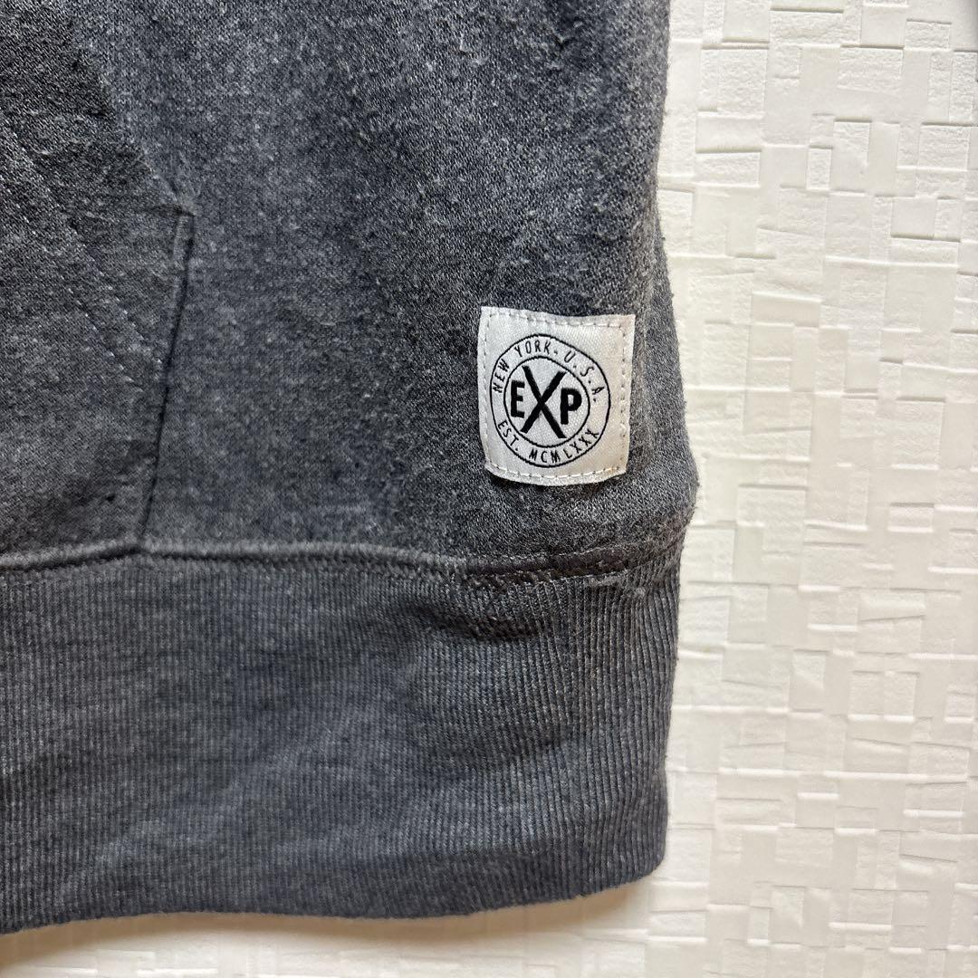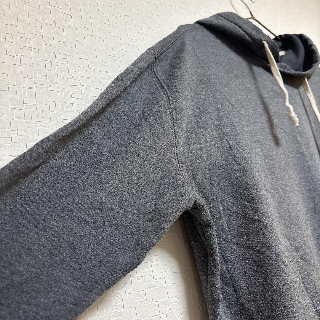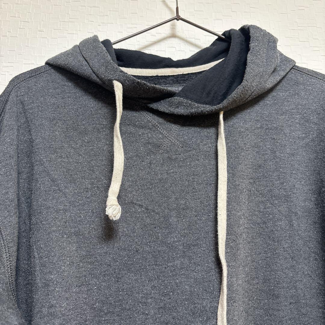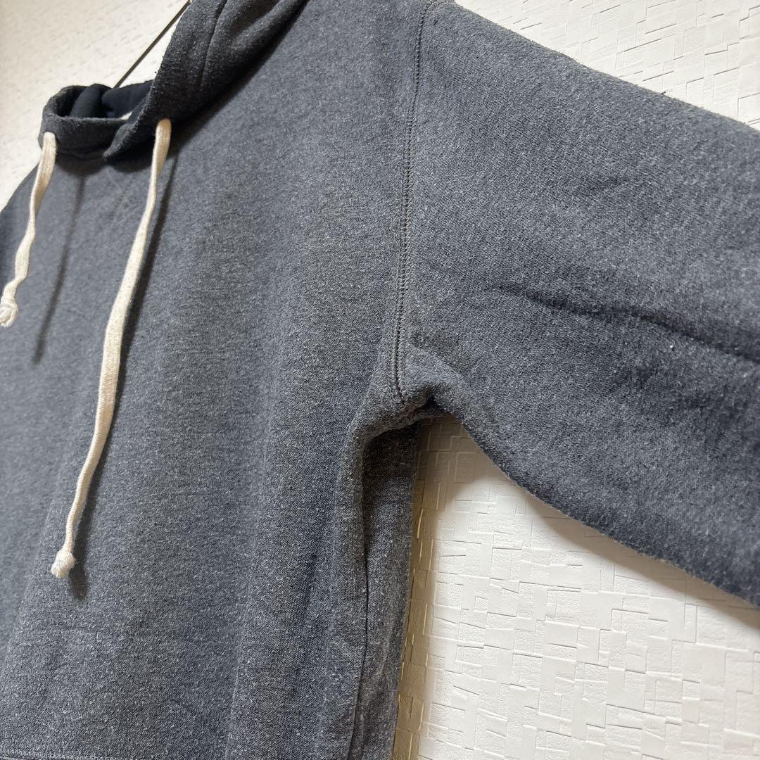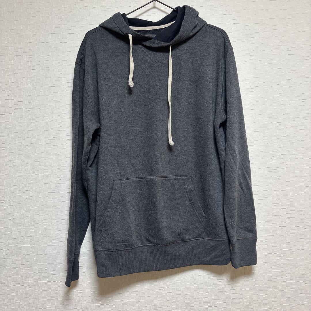 フード付きのグレーのパーカー、柔らかな素材で快適な着心地。