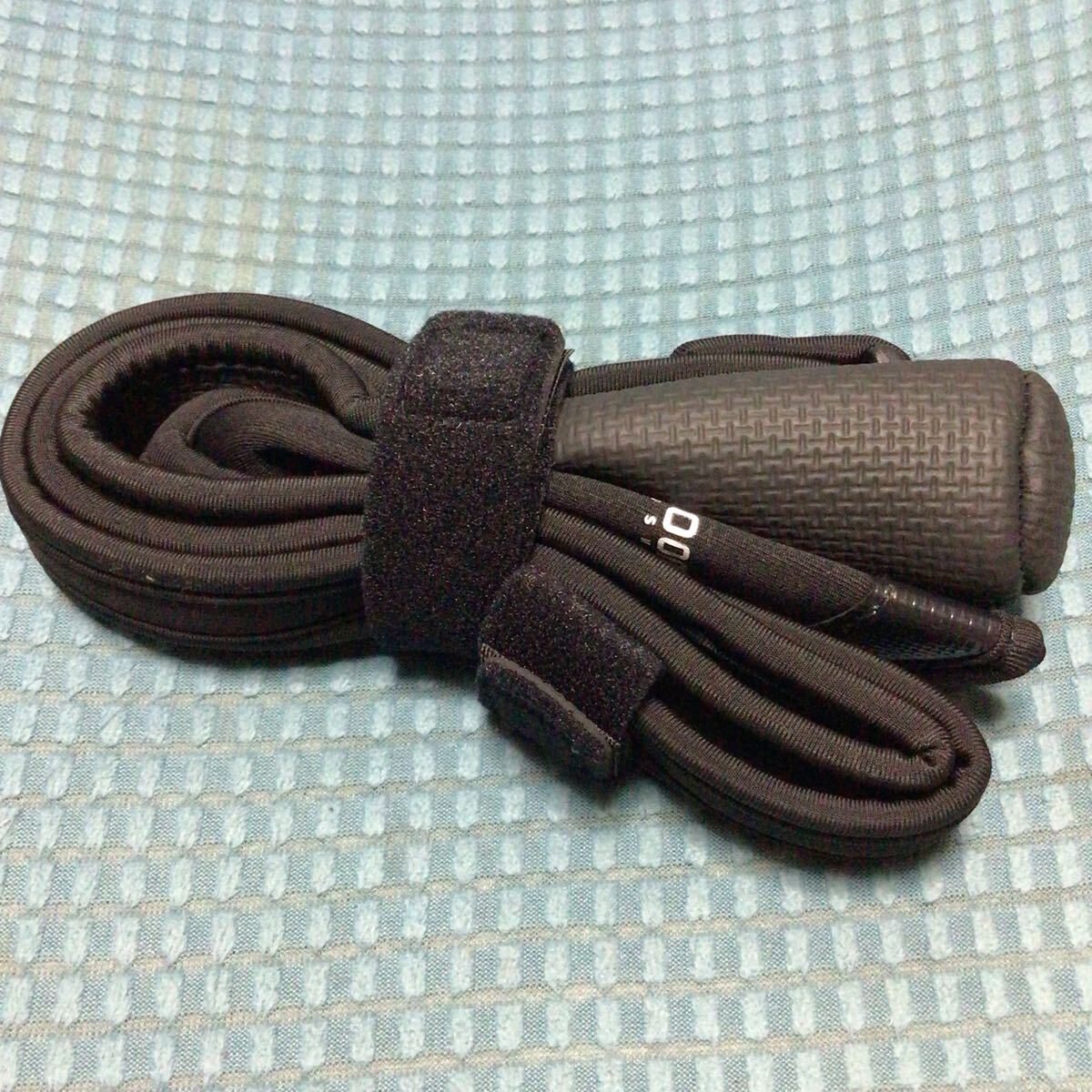 マジックテープでの長さ調整可能(最長134cm)です。ある程度伸び縮みもする素材です。