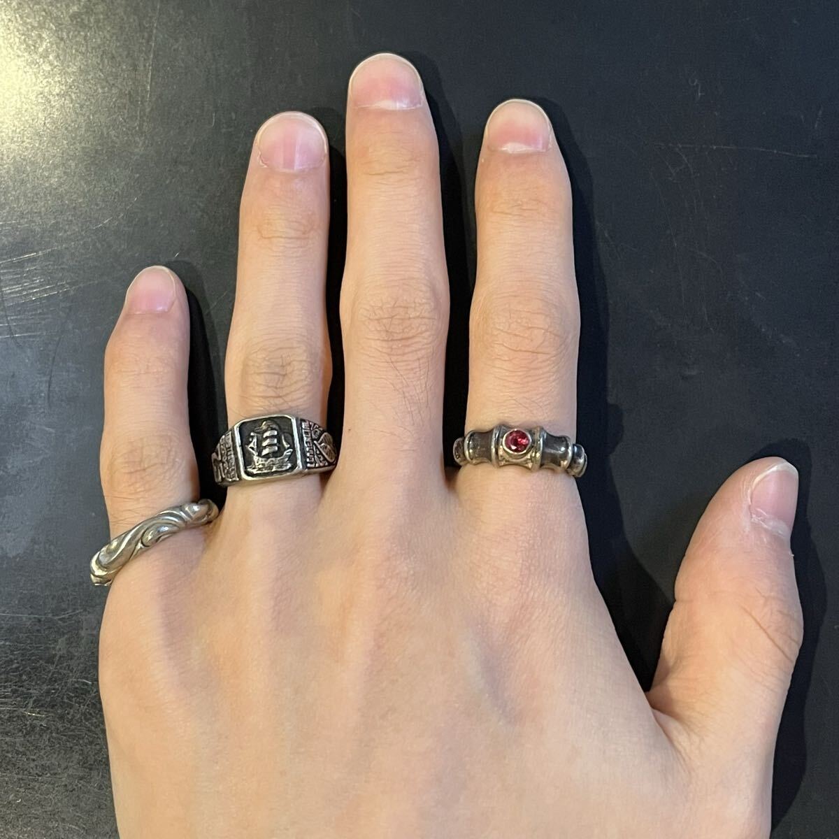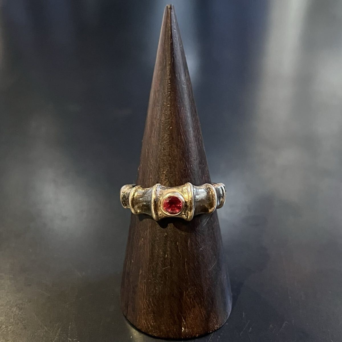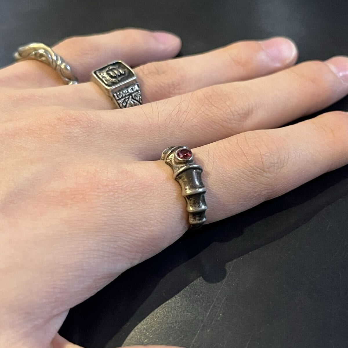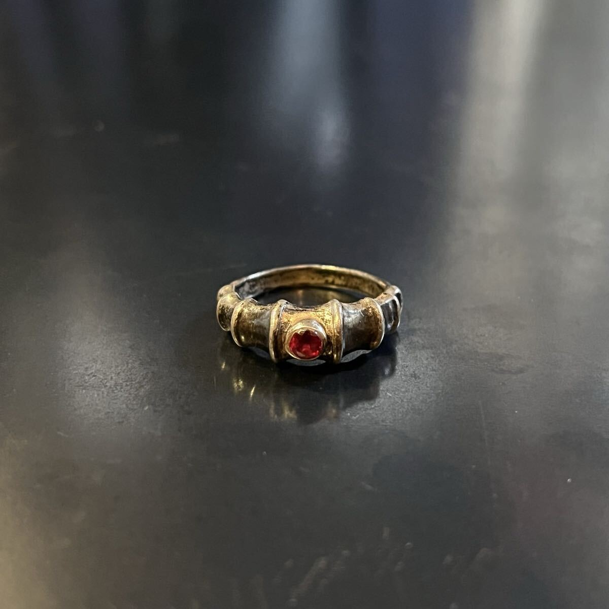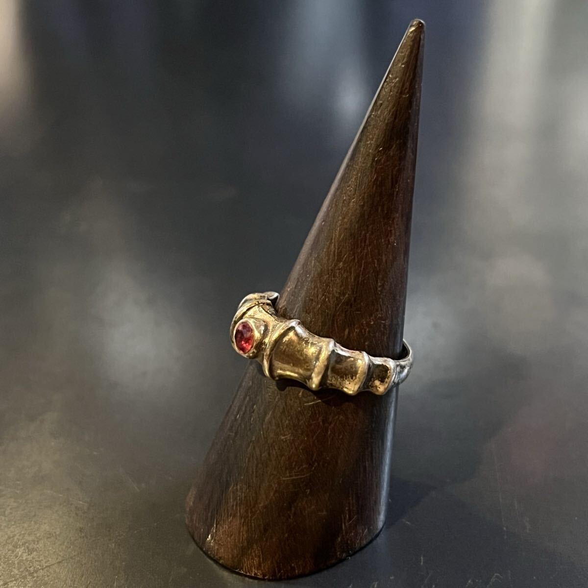 海外で買い付けたレッドストーンモチーフバンブーデザインのシルバーリングです。