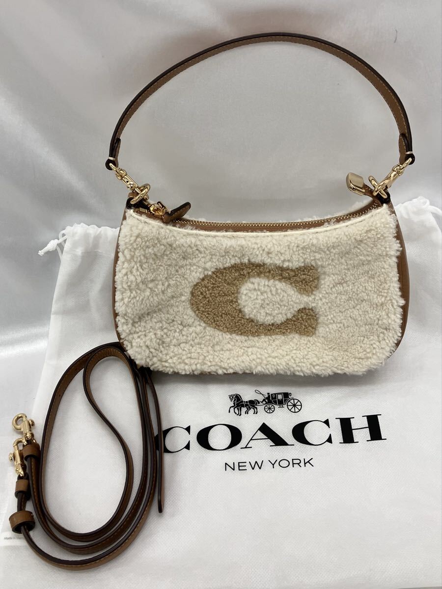 [T6528] 美品 COACH コーチ テリ ショルダー バッグ コーチ モチーフ ムートン CE557 | ||