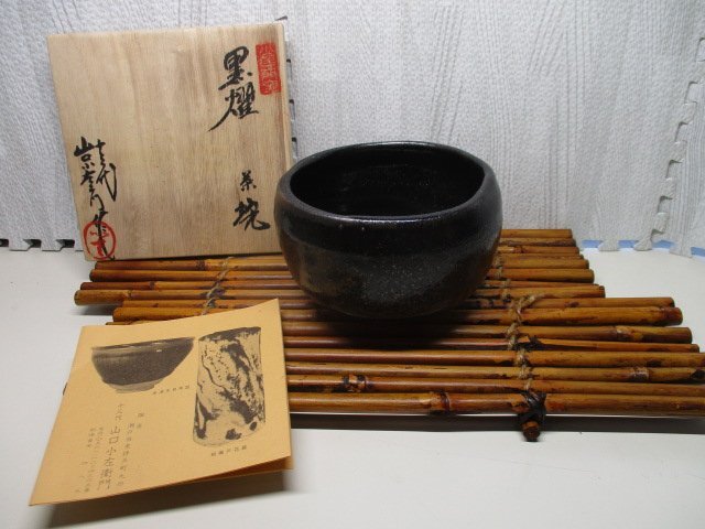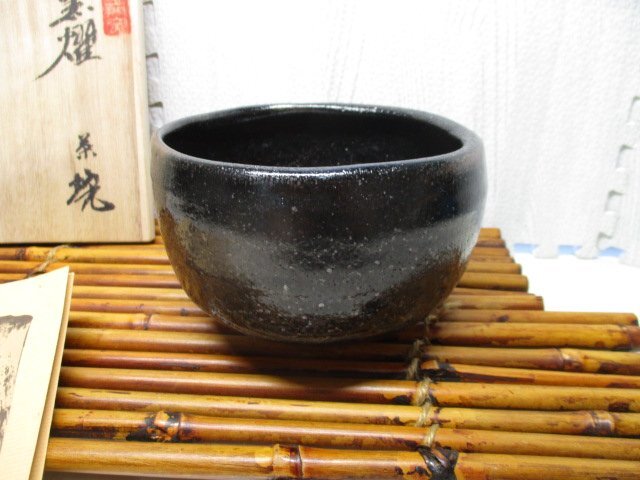 ★作家 十三代 山口小左衛門 瀬戸 黒燿 抹茶茶碗★ サイズ 高さ 直径12.8cm 8.5cm 未使用ですが長期保管です。 画像が全てとなります。 製造工程上の傷な度がある場合は作家さんの味だと思ってください。 ※サイズは形が変形しておりますので若干誤差があります。 ※茶碗の下の敷物はディスプレイ用となります。 当社のオークションは返品・交換・キャンセル等は一切お断りさせて頂いております。充分ご検討の上ご入札下さいませ。 | |