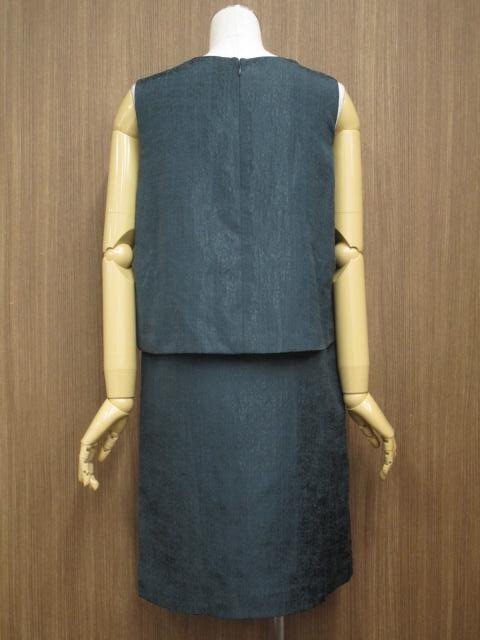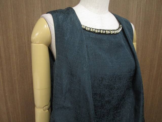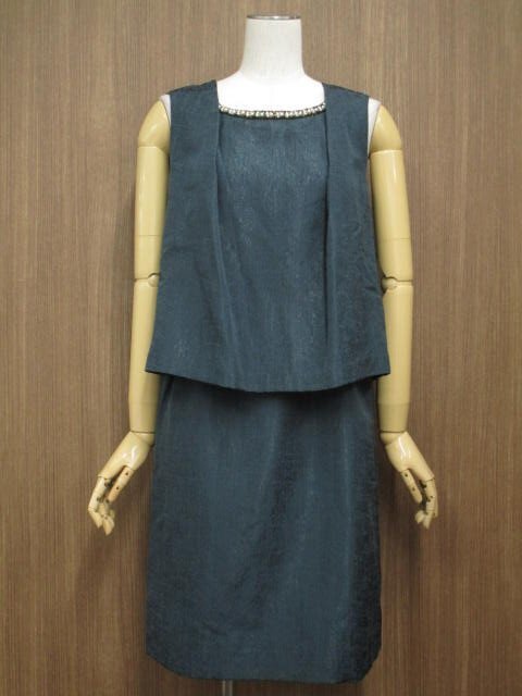 ひざ丈 ラウンドネック ノースリーブワンピース グリーン系